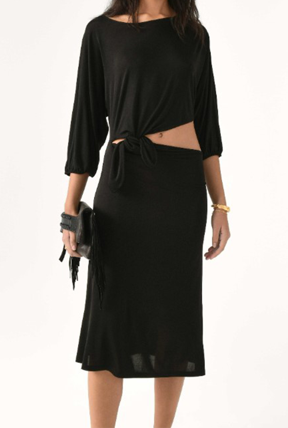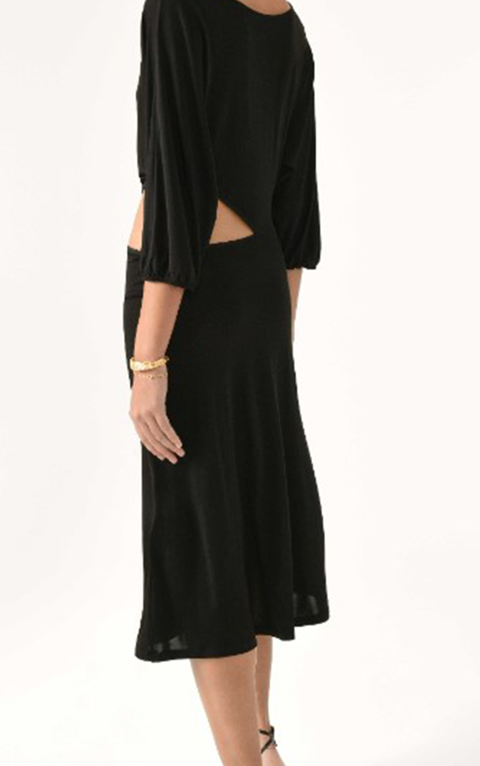 Type-Edgy Black Dress, Color-Black, Neck type-Boat neck, Sleeve Length-Three fourth, Fit-Body Fit, Fabric-Rayon