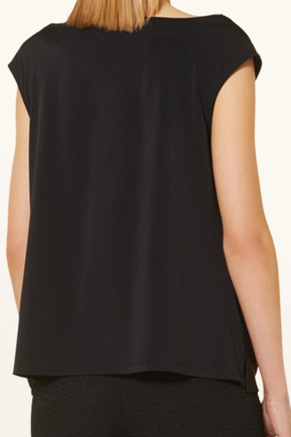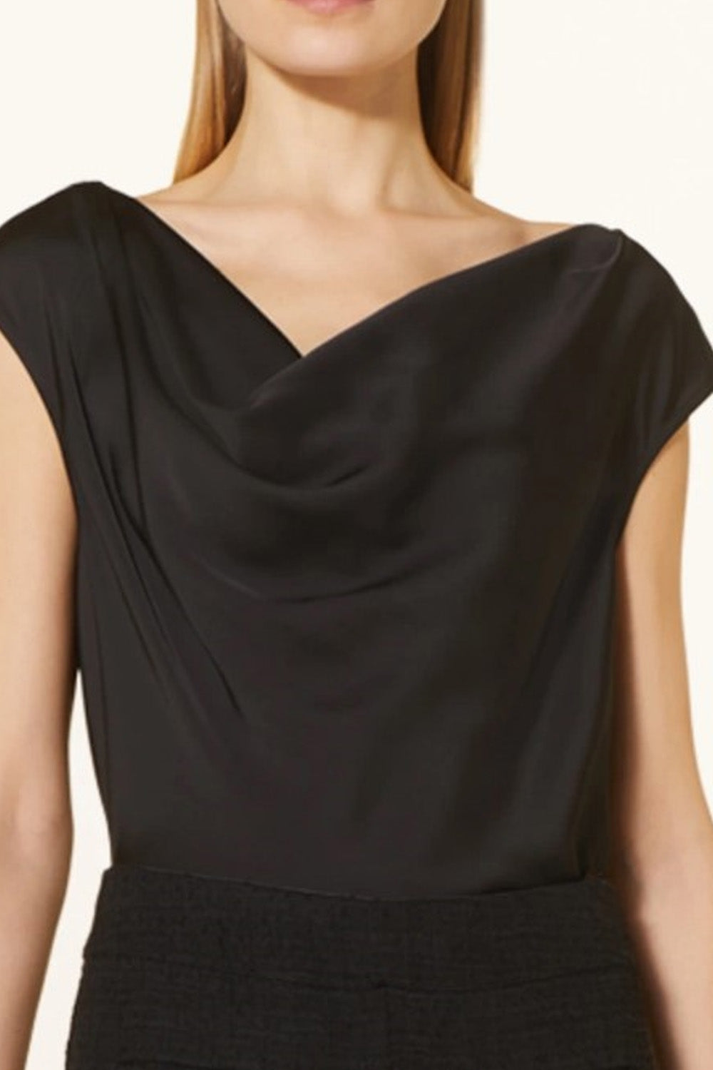 Type-Effervescent Black Top, Color-Black, Neck type-Cowl neck, Sleeve Length-Cap sleeve, Fit-Relaxed, Fabric-Satin Lycra