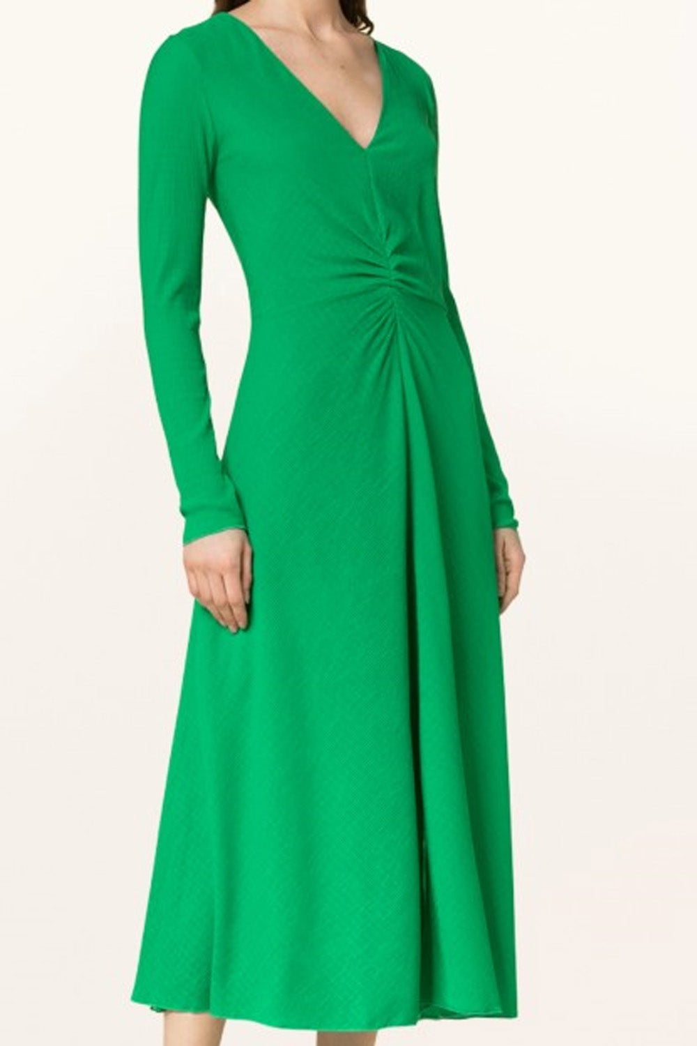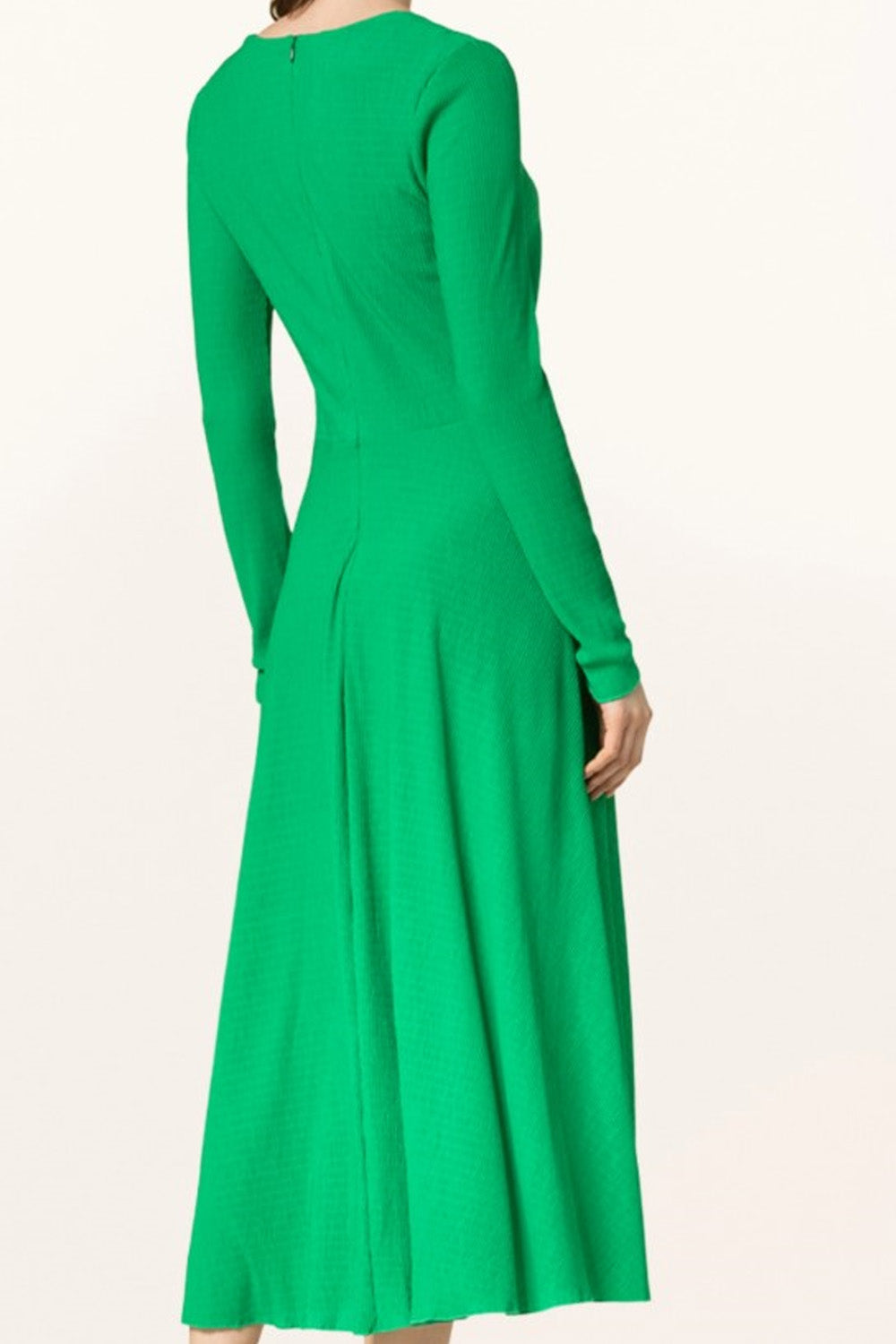 Type-Elements Green Dress, Color-Green, Neck type-V neck, Sleeve Length-full length, Fit-Regular, Fabric-Poly Lycra