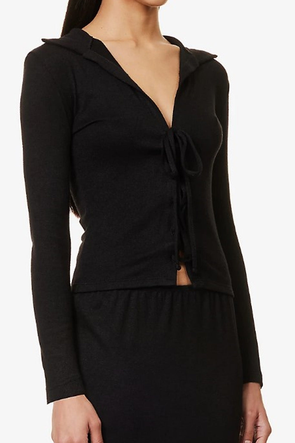 Type-Ephemeral Black Top, Color-Black, Neck type-collar neck, Sleeve Length-full length, Fit-Body Fit, Fabric-Polylycra