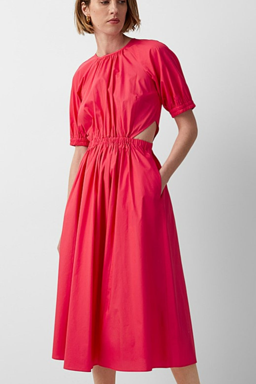 Embrace the allure of the Ethereal Red Dress, a captivating garment that exudes grace and sophistication. The rich poplin fabric drapes beautifully, ensuring a comfortable and flattering fit for every body type. The round neck adds a touch of classic charm, while the half sleeves strike the perfect balance between modesty and modernity.