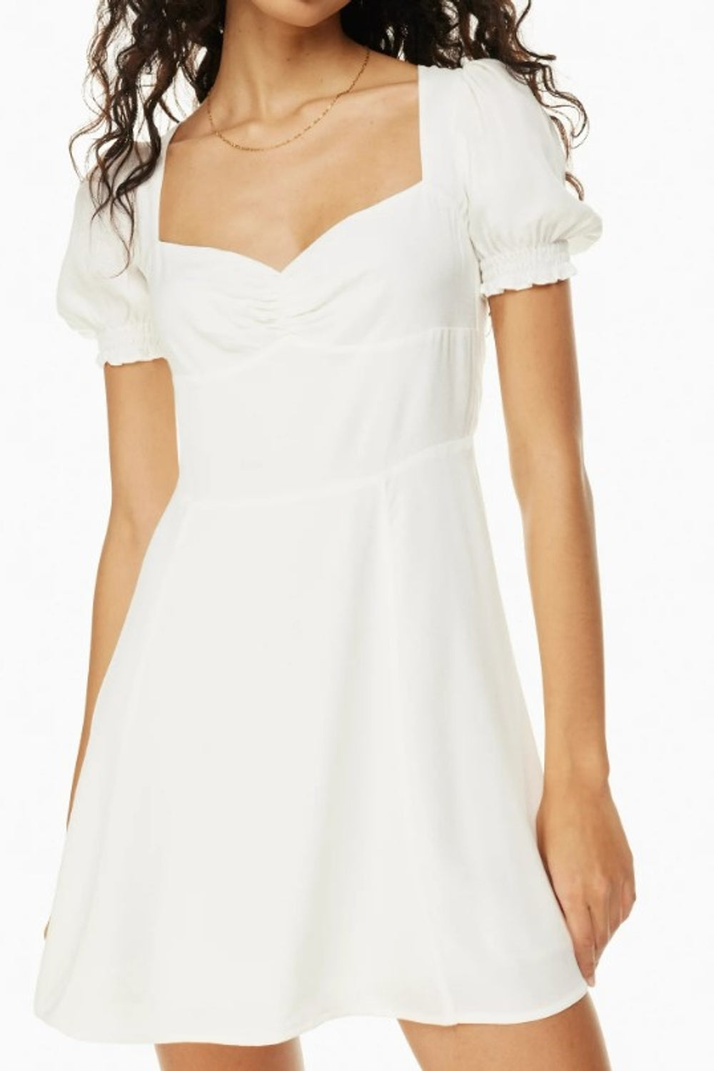 Type - Euphoric White Dress, Color - White, Neck type - Sweetheart neck, Sleeve Length - Half Sleeve, Fit - Regular, Fabric - Rayon