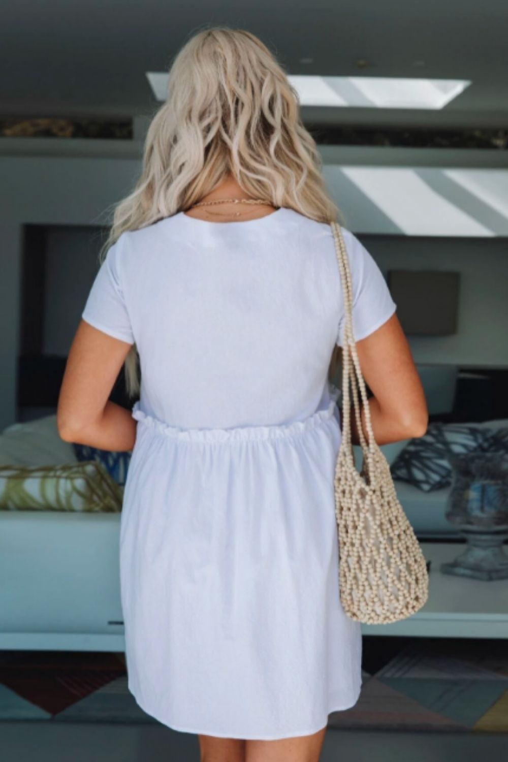 SKU:EyeletLaceUpKnotFrillTrimSmockDress-XS