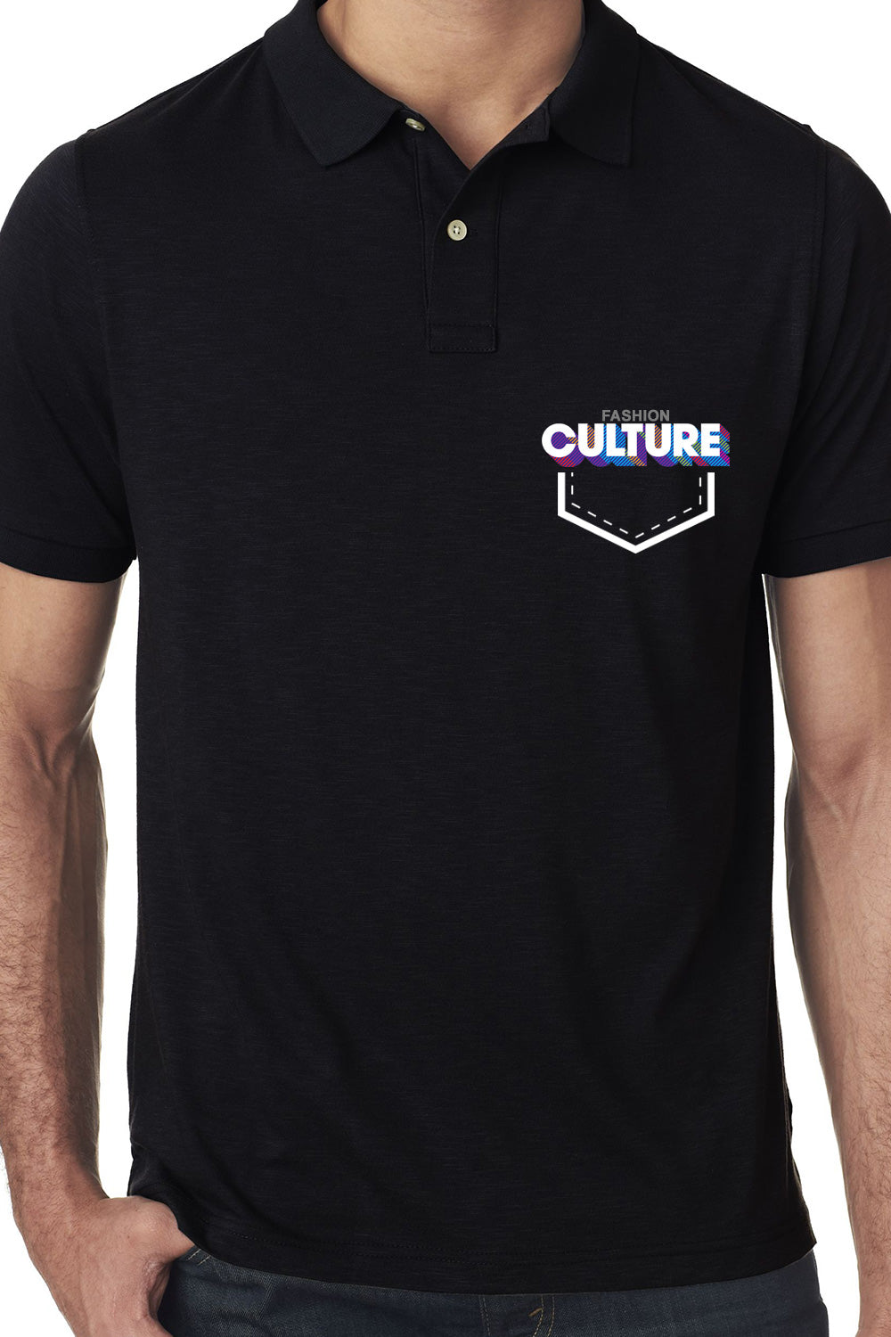 Black Premium Polo T-Shirt with Fashion Culture Retro Typographic Pocket Print! Perfect for office and leisure. Can go with jeans or joggers and formal or sneaker shoes.