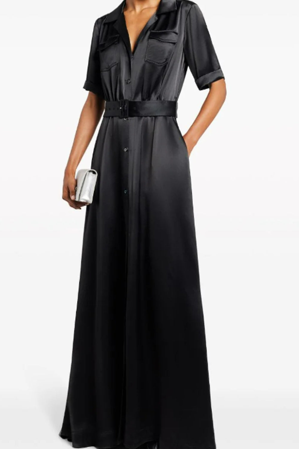 Type - Fir Black Dress, Color - Black, Neck type - Collar, Sleeve Length - Half Sleeve, Fit - Regular, Fabric - Satin