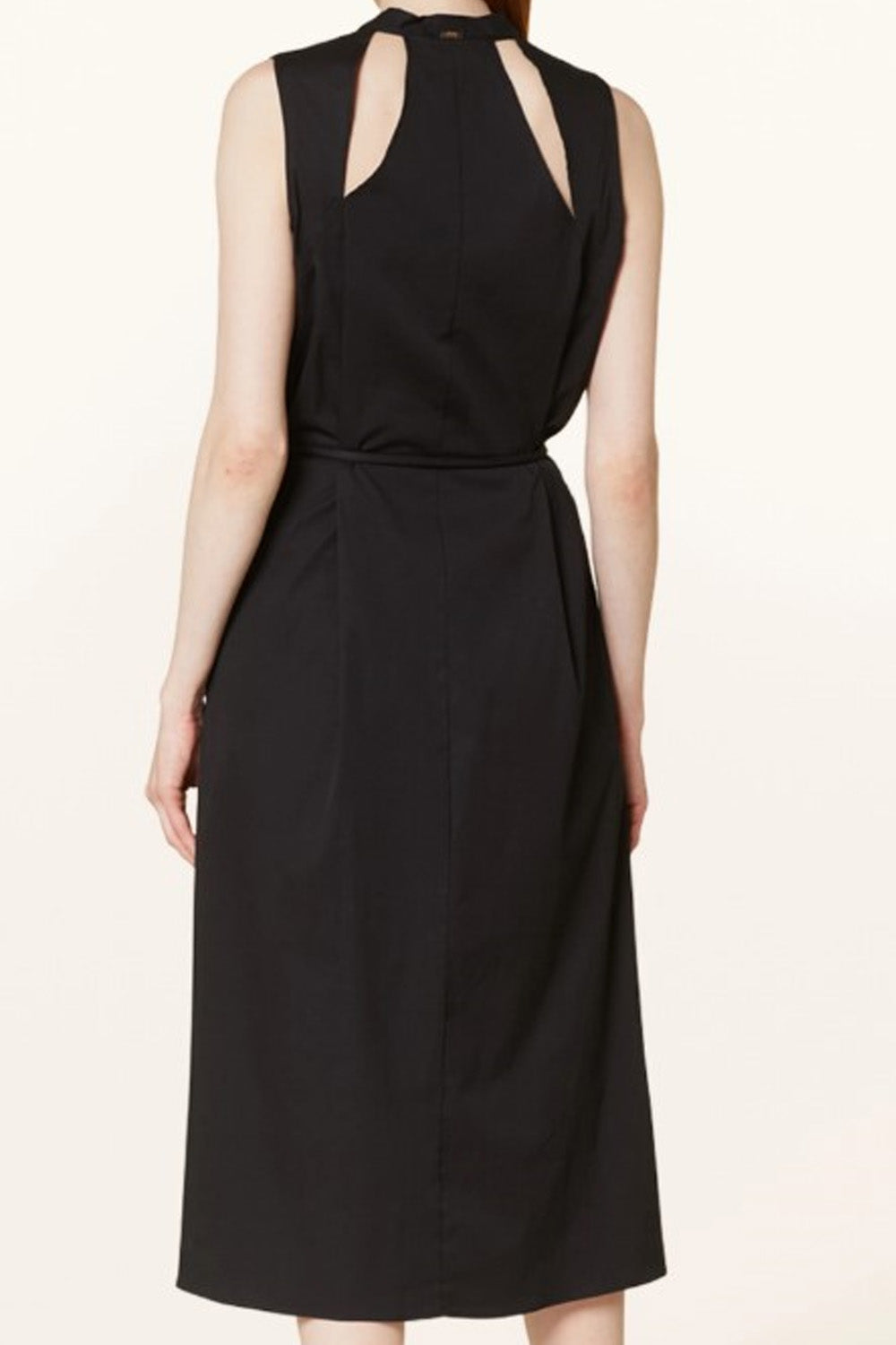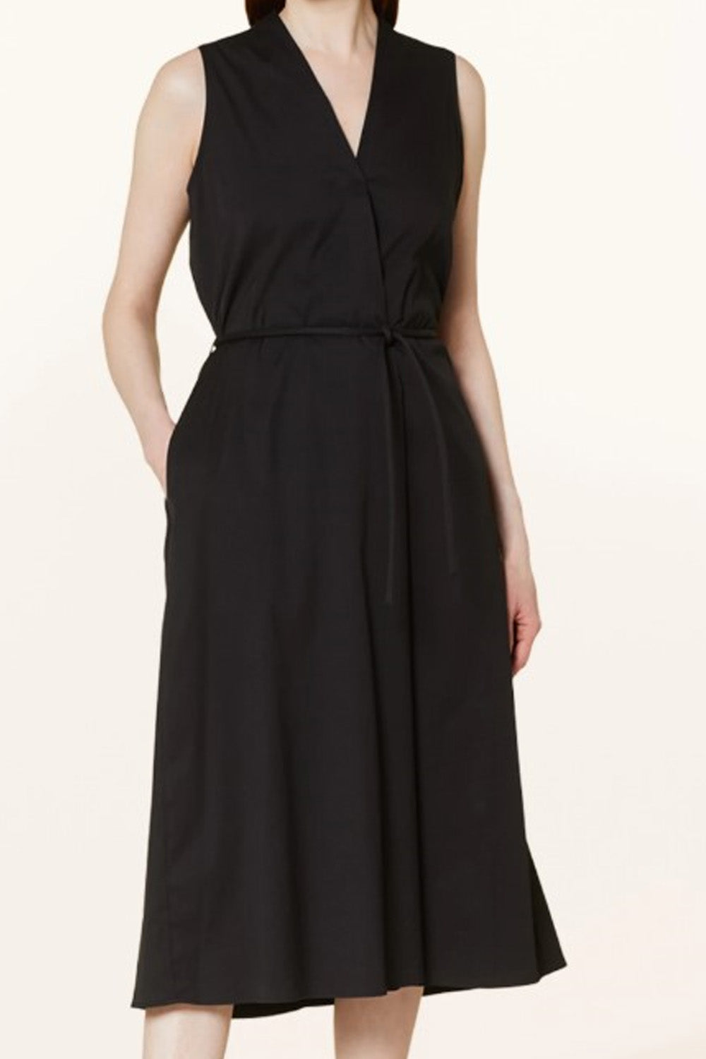 Type-Fizz Black Dress, Color-Black, Neck type-V Neckline, Sleeve Length-Sleeveless, Fit-Regular, Fabric-Poplin