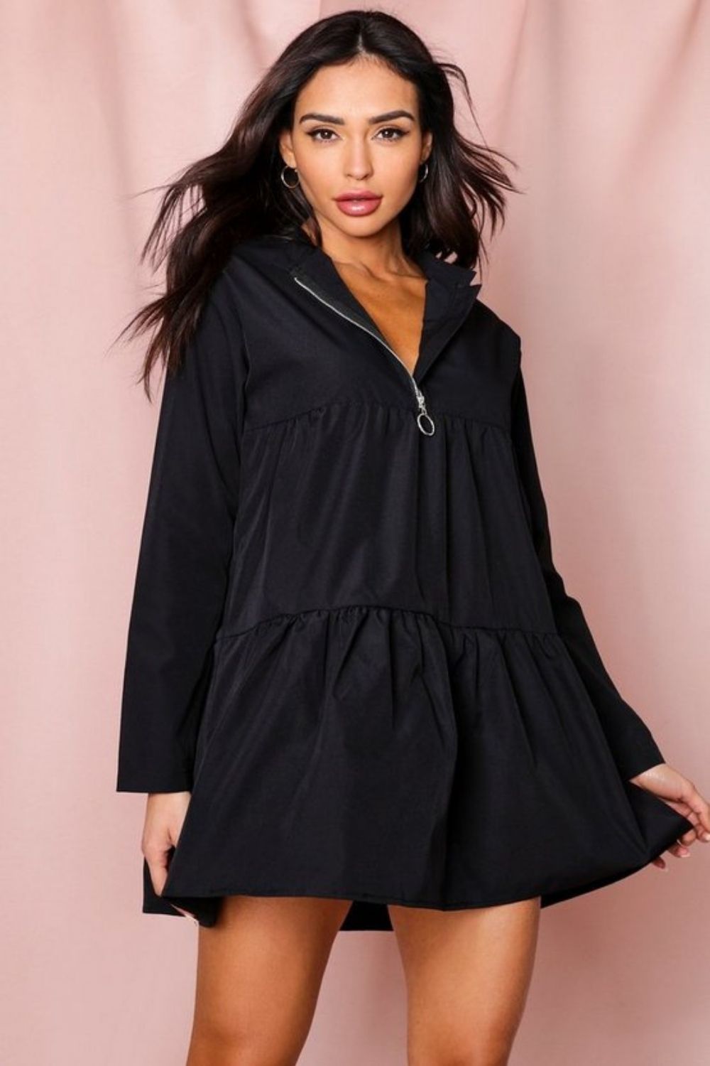 Playful Boho Vibe: Embrace a bohemian vibe by pairing the Flared Collar Black Dress with a wide-brimmed hat, fringed accessories, and ankle boots. This effortless and playful combination is perfect for summer festivals or casual outings.