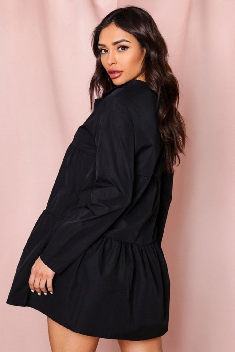 With its flared collar, full sleeves, and mini length, our Flared Collar Black Dress is a wardrobe staple that effortlessly combines comfort and style. Embrace the versatility of this timeless piece and let it become your go-to choice for various occasions throughout the summer season.