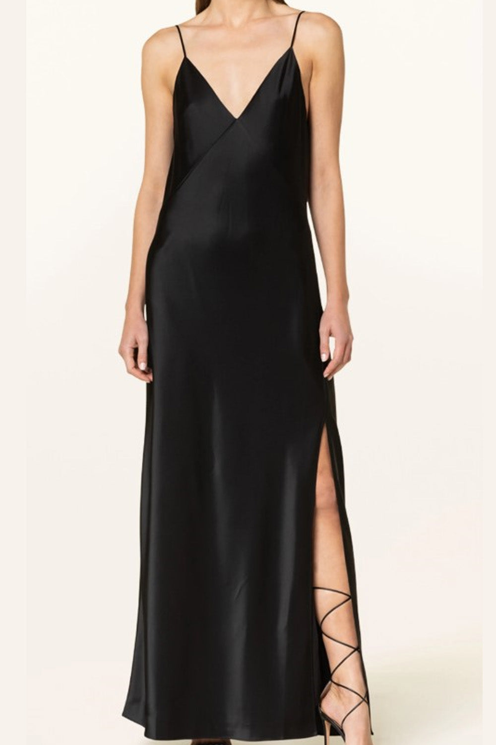 Type-Folly Black Dress, Color-Black, Neck type-V Neckline, Sleeve Length-Sleeveless, Fit-Relaxed, Fabric-Satin Lycra