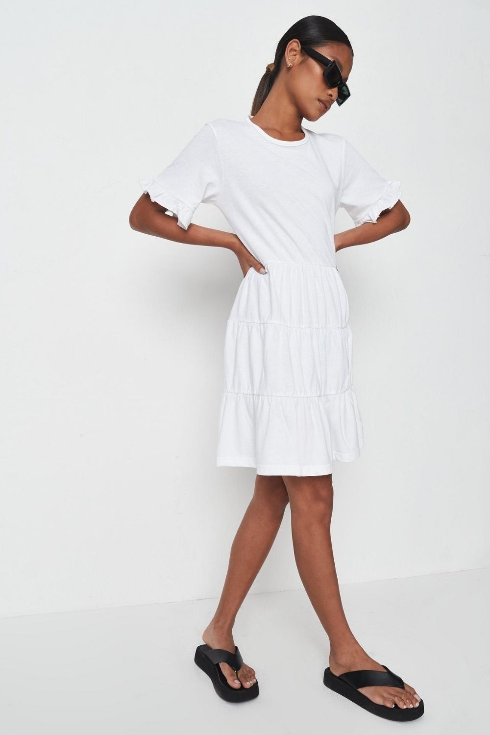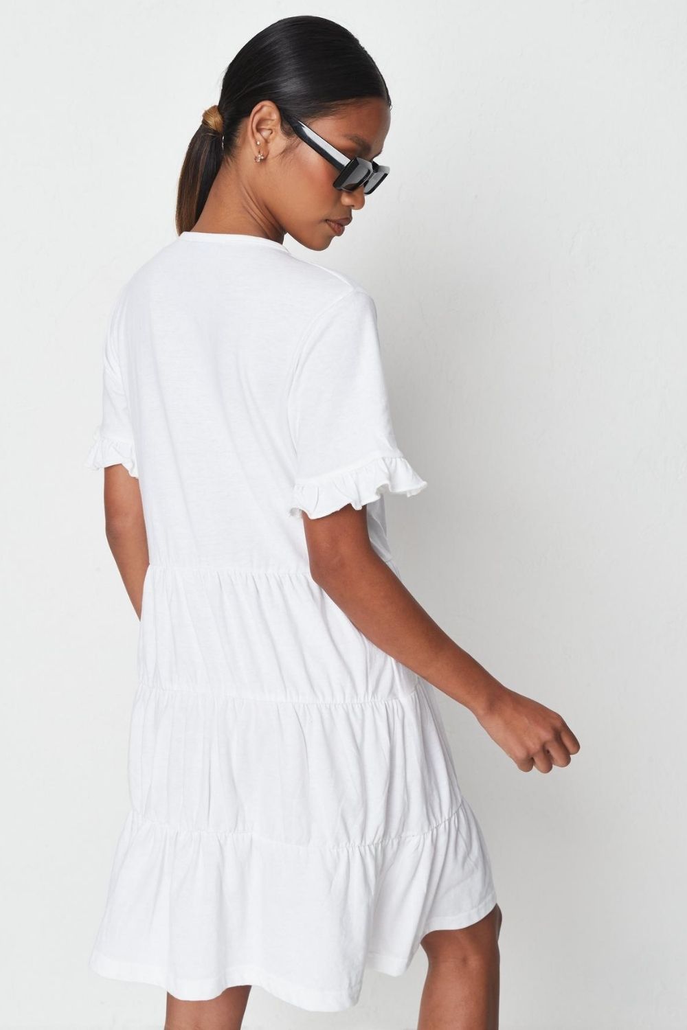 Type- Frilled Hem Sleeve White Mini Dress