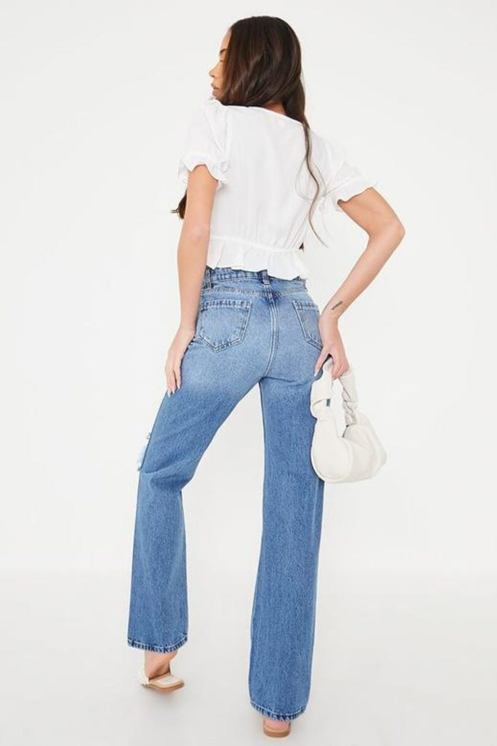 Frilled Hem White V Neck Top