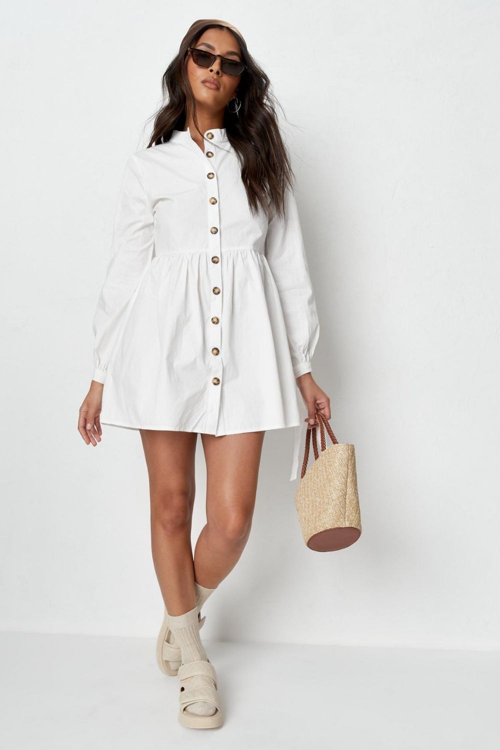 SKU:FrontButtonopenFlaredFullsleeveWhiteMiniDress-XS