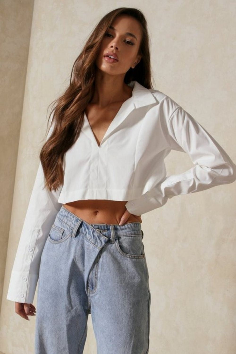 Type- Full Sleeves Boxy White Crop Top