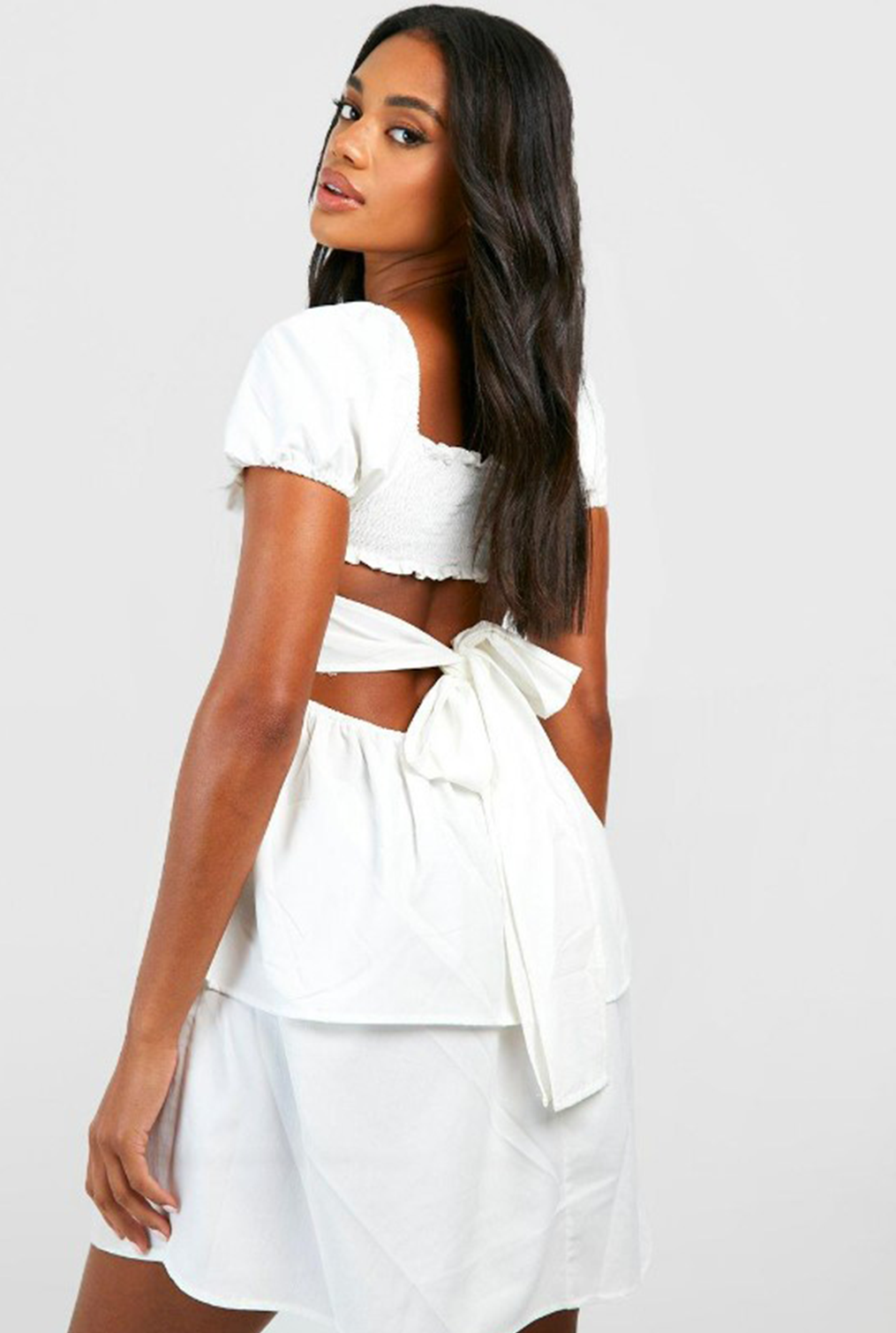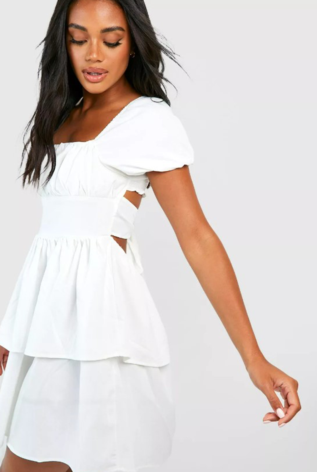 Type-Giggly White Dress, Color-White, Neck type-Square neck, Sleeve Length-Half Sleeve, Fit-Regular, Fabric-Poplin