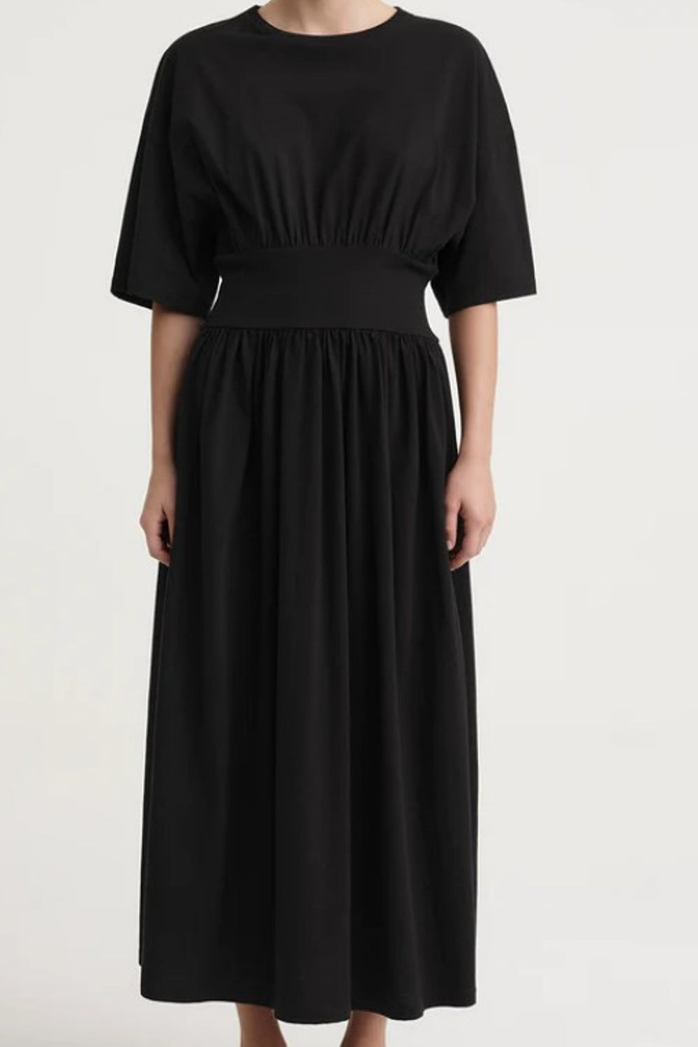 Type-Grateful Black Dress, Color-Black, Neck type-Round Neck, Sleeve Length-Below elbow, Fit-Regular, Fabric-Poplin
