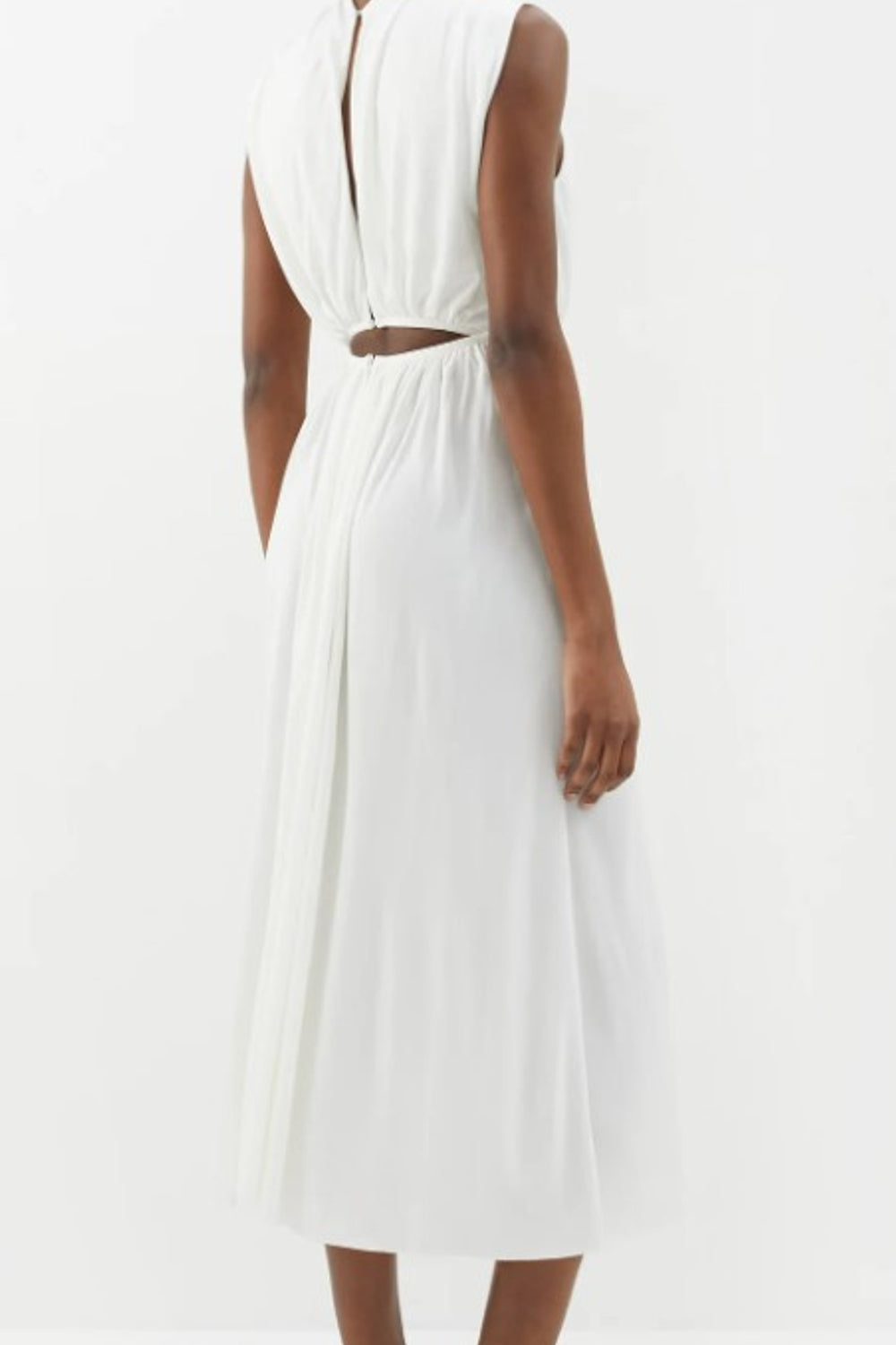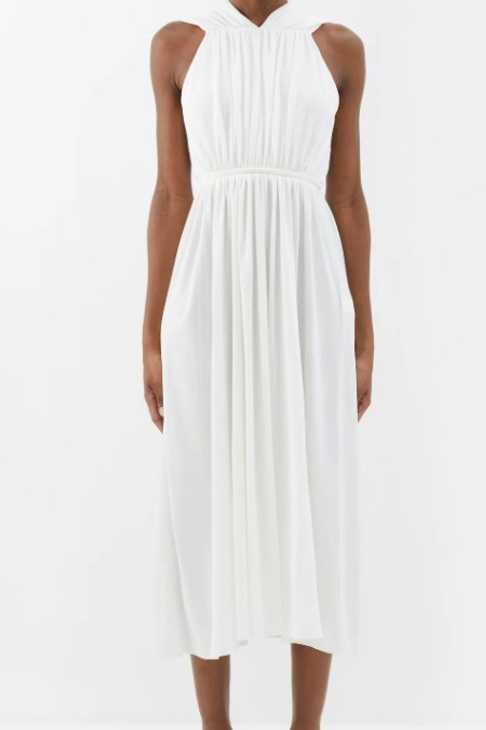 Type-Hamilton White Dress, Color-White, Neck type-Halter Neck, Sleeve Length-Sleeveless, Fit-Regular, Fabric-Poplin