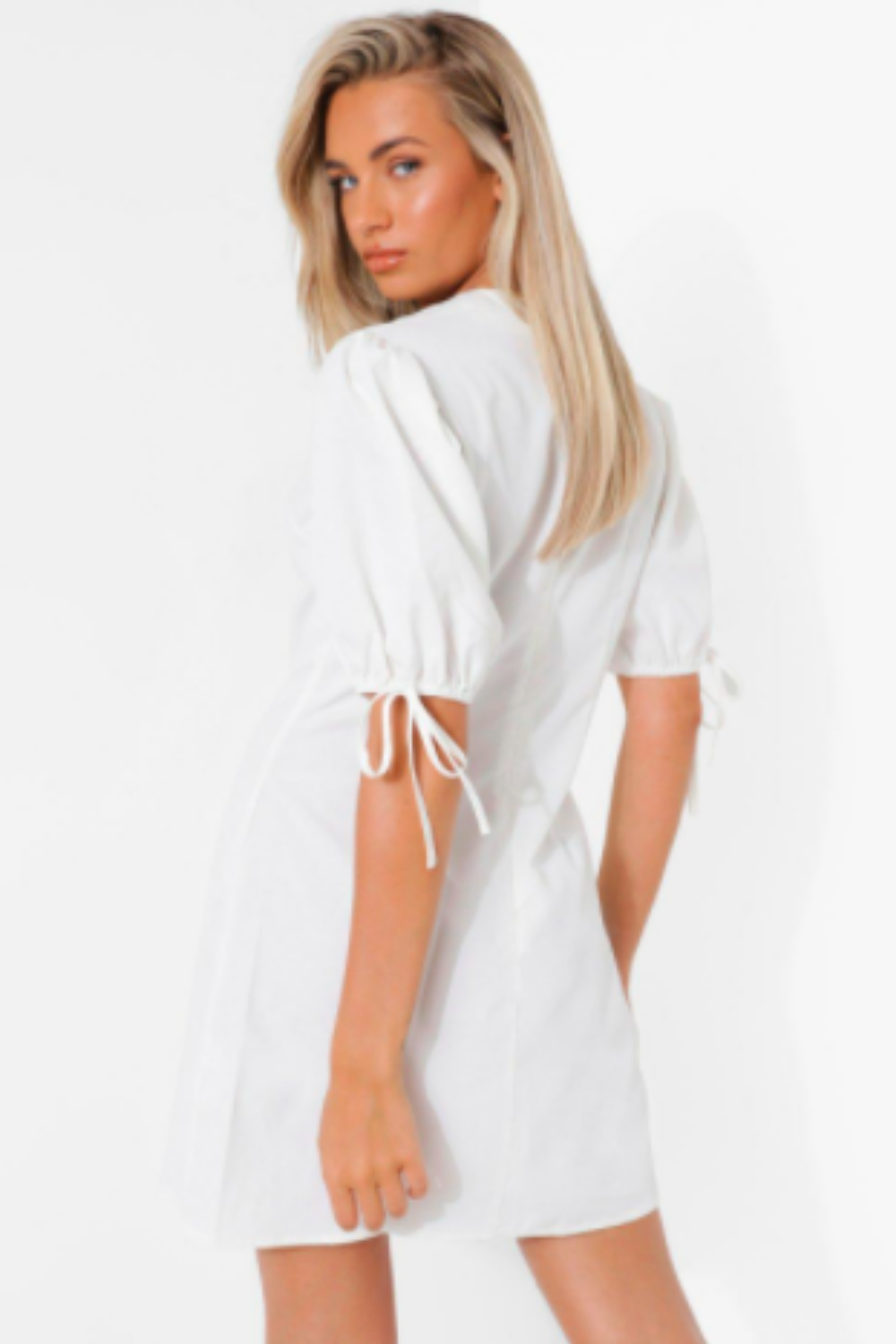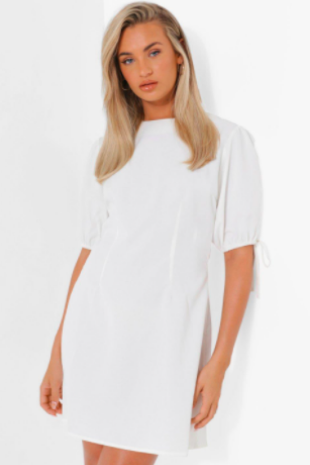 SKU:HighNeckPuffSleevedMiniDress-XS