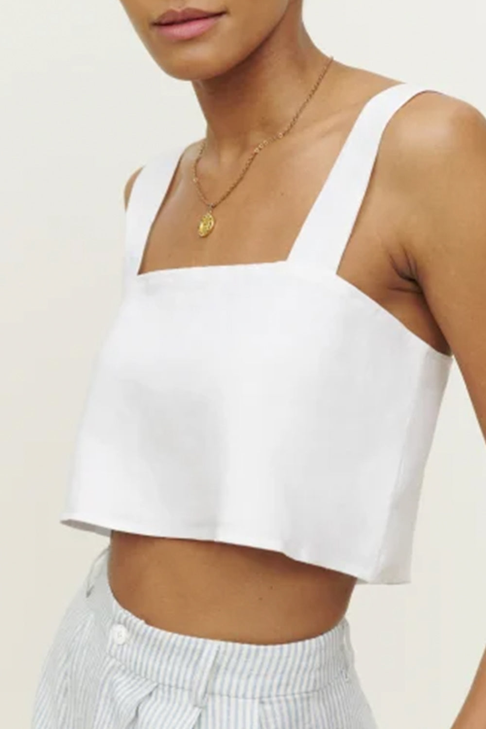 Type-Highgate White Top Color-White Neck type-Square neck Sleeve Length-Sleeveless Fit-Slim Fabric-Poplin