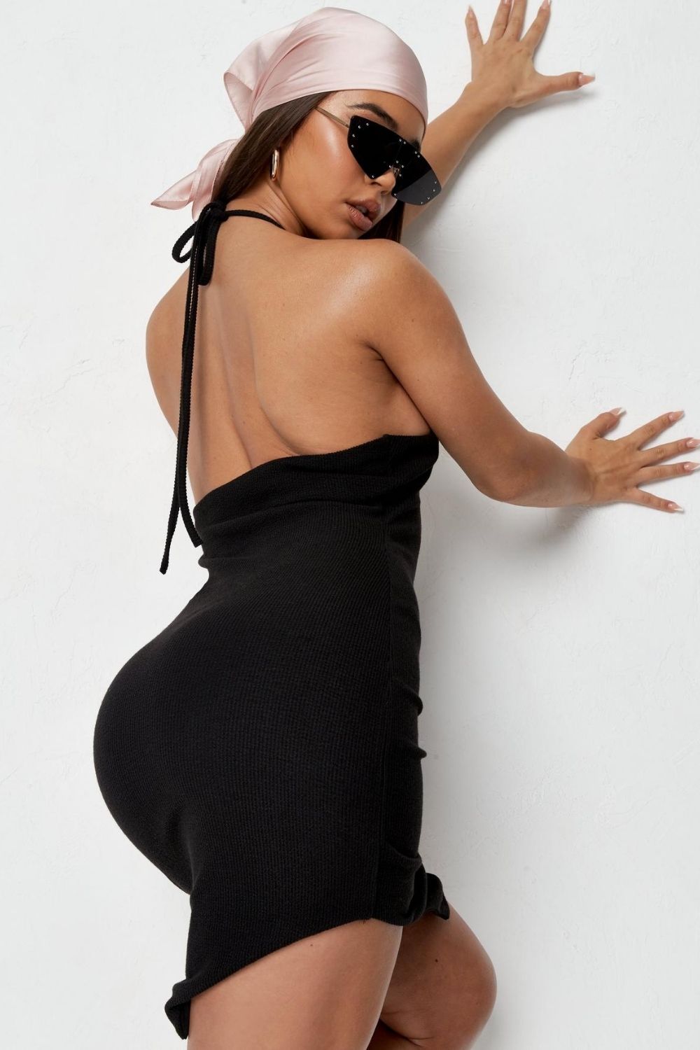 SKU:HlaterNeckBodyconBlackMiniDress-XS