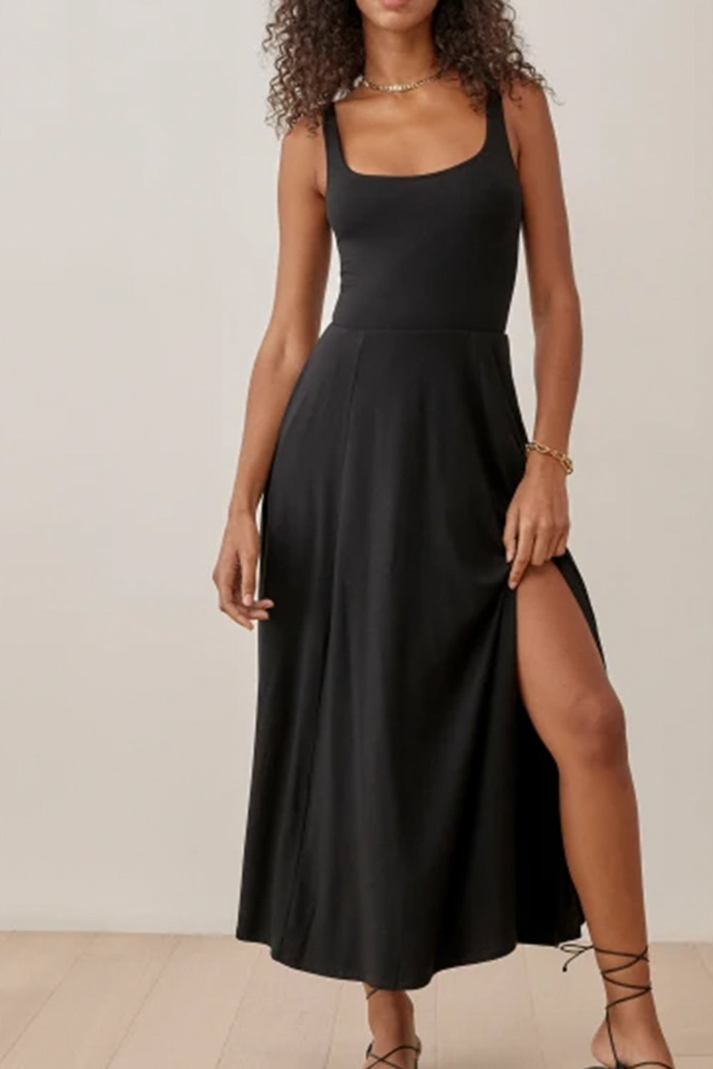Type-Holland Black Dress Color-Black Neck type-U Neck Sleeve Length-Sleeveless Fit-Body Fit Fabric-Poly Lycra