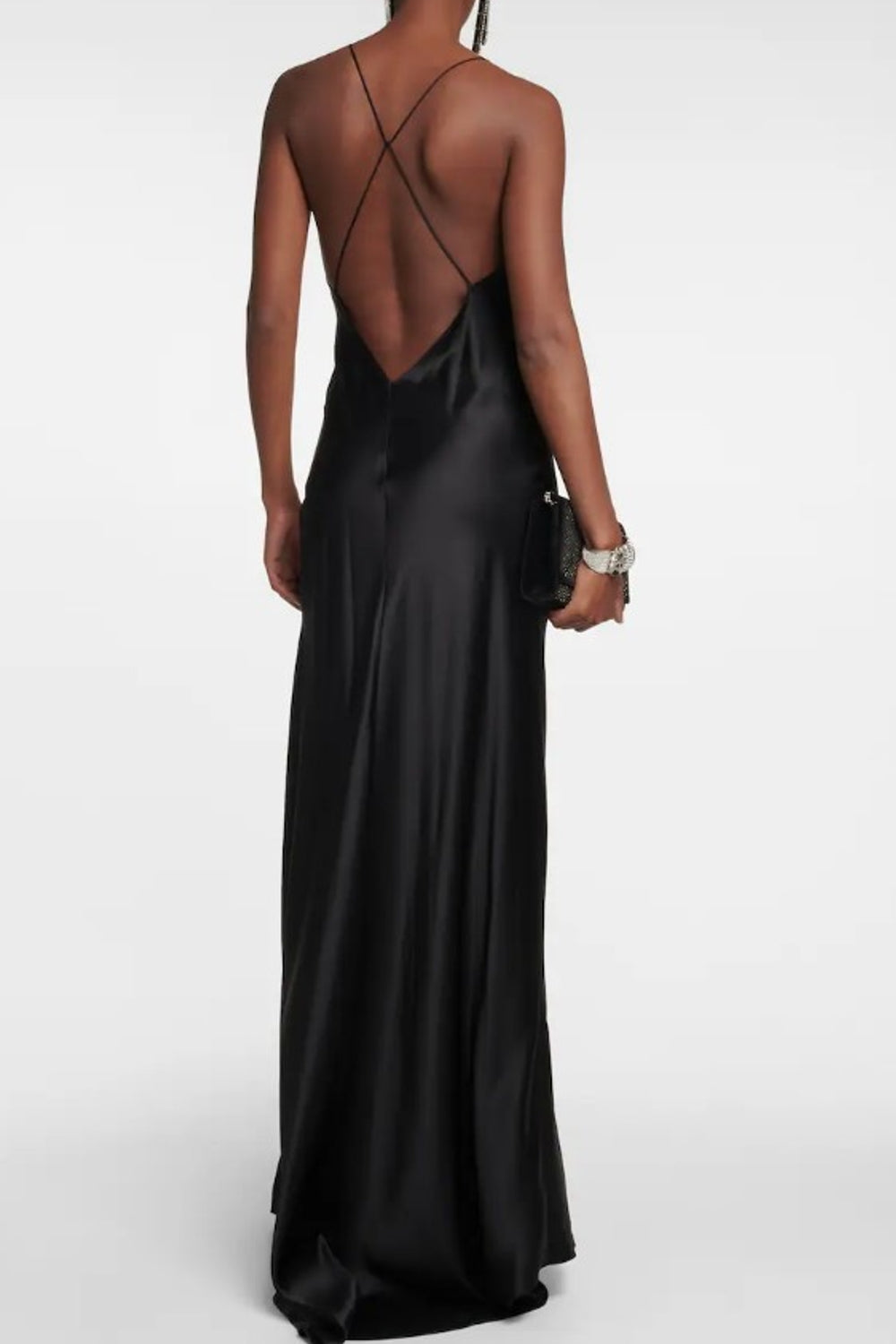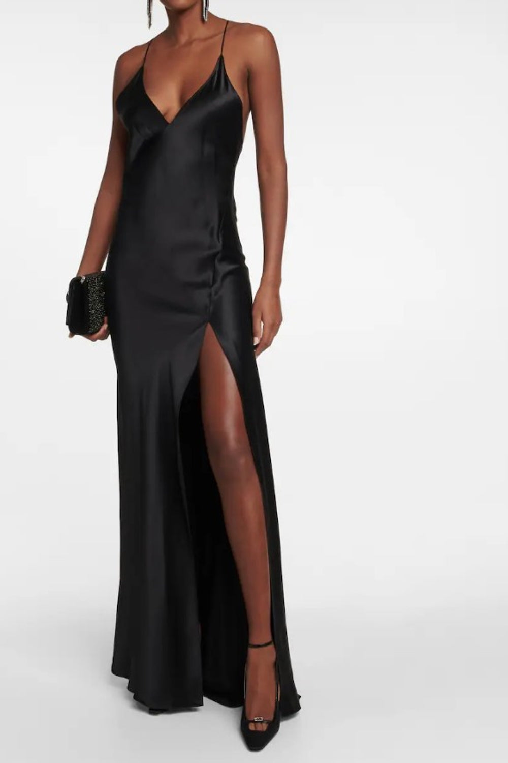 Type-Hwado Black Dress, Color-Black, Neck type-V Neck, Sleeve Length-Sleeveless, Fit-Body Fit, Fabric-Satin Lycra