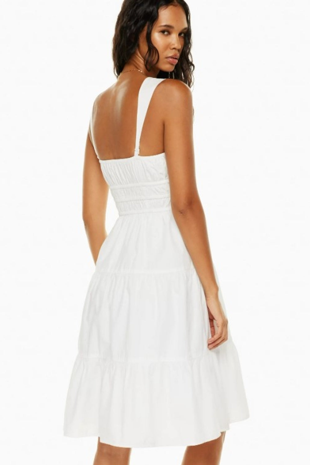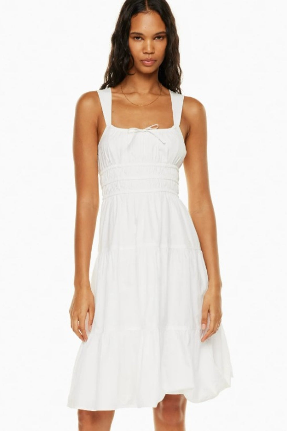 Type - Hyacinthe White Dress, Color - White, Neck type - Square Tie neck, Sleeve Length - Sleeveless, Fit - Regular, Fabric - Rayon