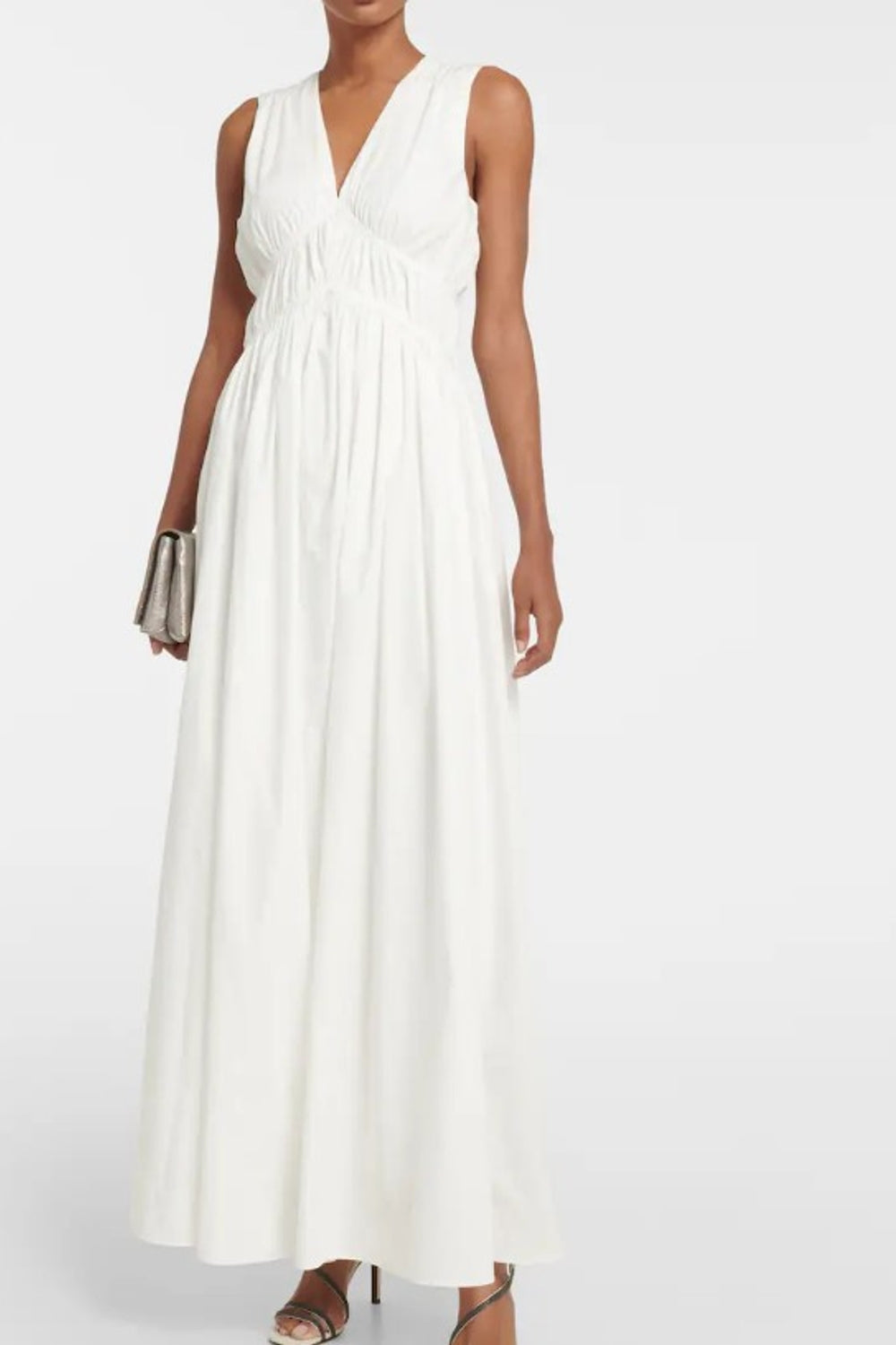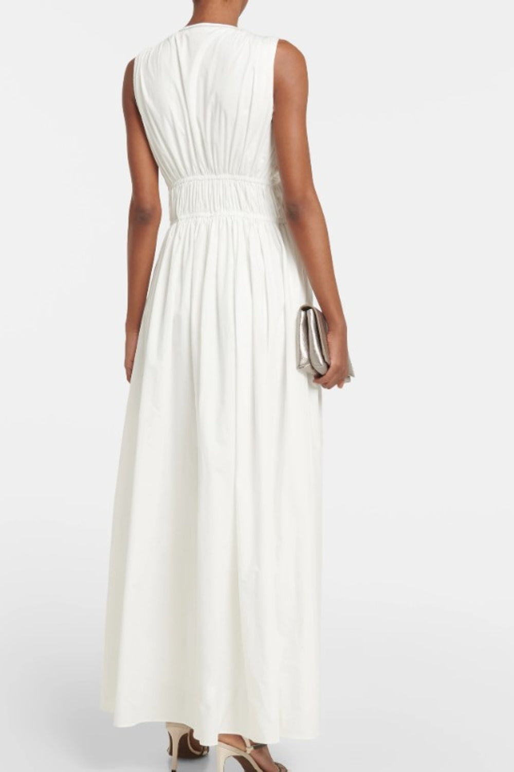 Type-Icheon White Dress, Color-White, Neck type-V Neck, Sleeve Length-Sleeveless, Fit-Regular, Fabric-Poplin