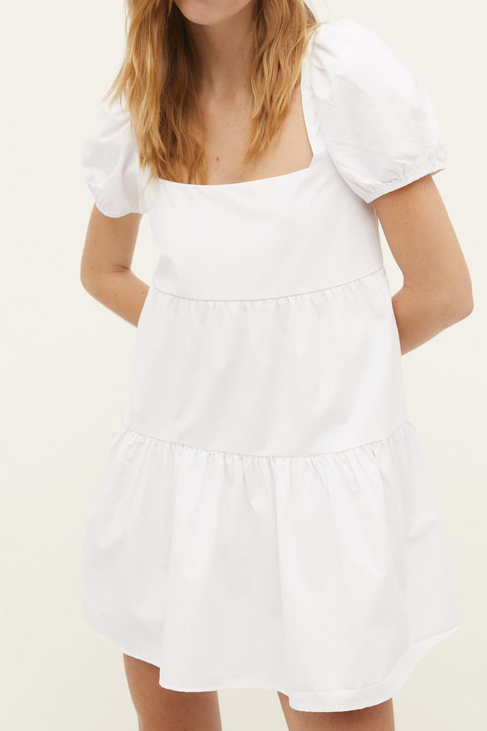 Type-Ilion White Dress Color-White Neck type-Square neck Sleeve Length-Half Sleeve Fit-Regular Fabric-Poplin