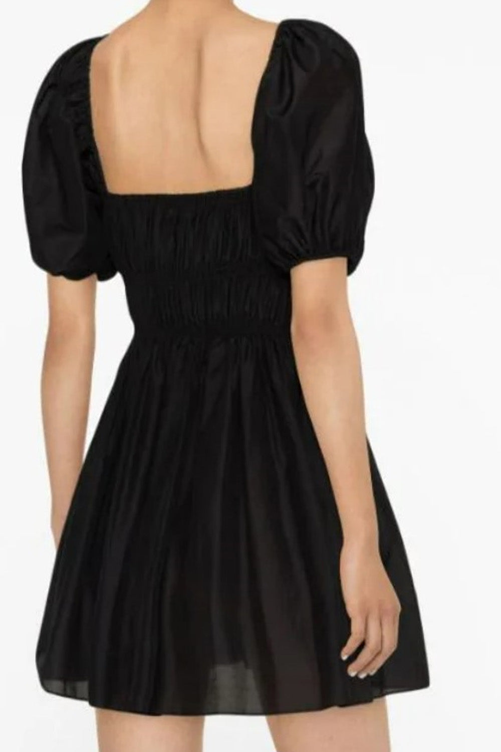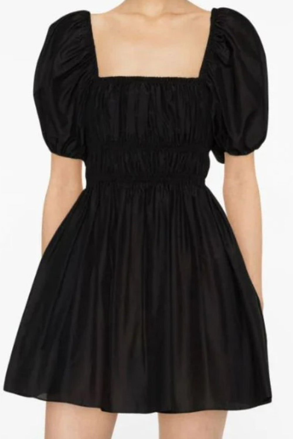 Type-Illusion Black Dress, Color-Black, Neck type-Square neck, Sleeve Length-Half Sleeve, Fit-Regular, Fabric-Poplin