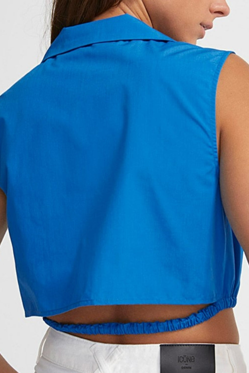 Type-Imbue Blue Top, Color-Blue, Neck type-Collar , Sleeve Length-Sleeveless, Fit-Body Fit, Fabric-Poplin