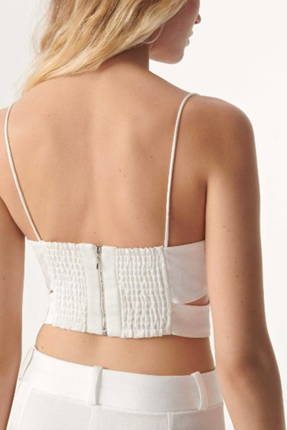 Type-Impudent White Top, Color-White, Neck type-V Neckline, Sleeve Length-Sleeveless, Fit-Slim, Fabric-Rayon