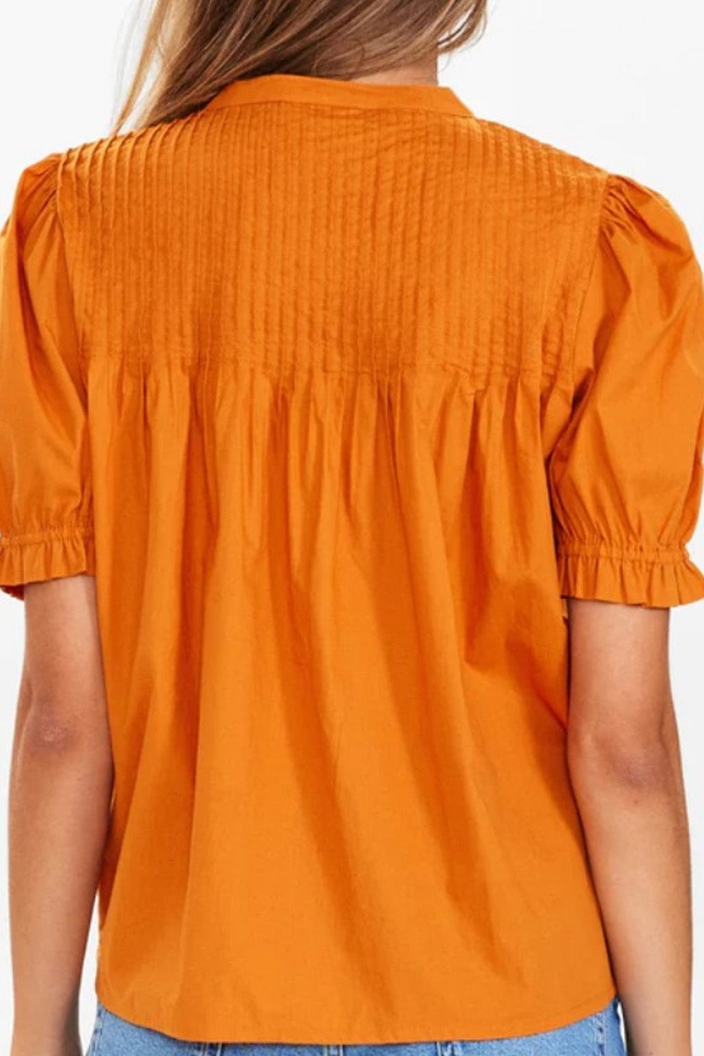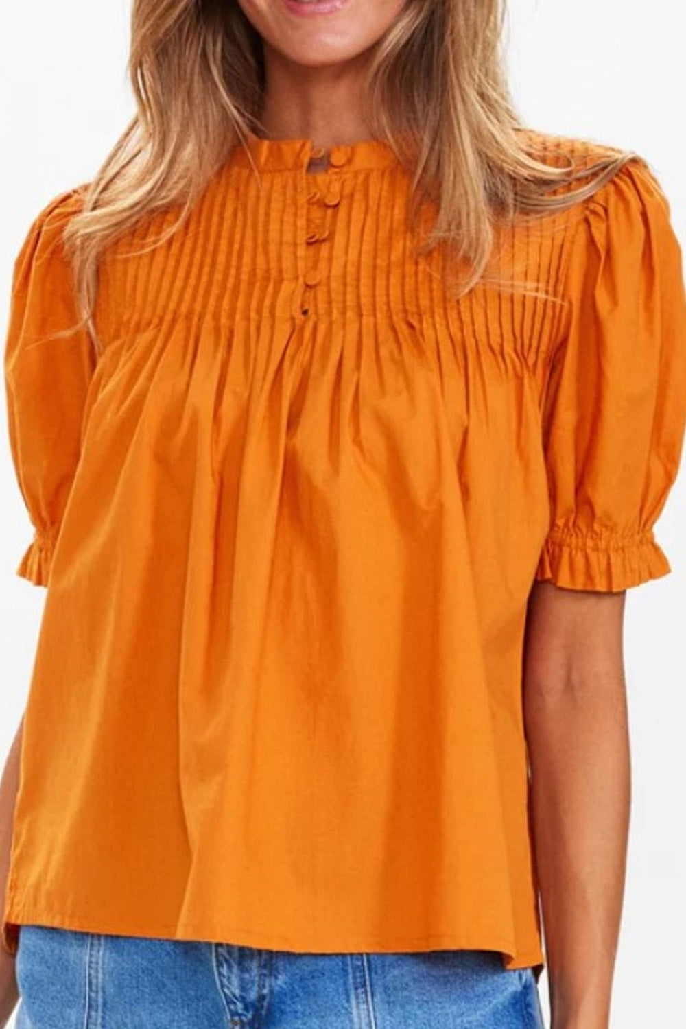 Type-Incognito Orange Top, Color-Orange, Neck type-High neck, Sleeve Length-Half Sleeve, Fit-Regular, Fabric-Poplin