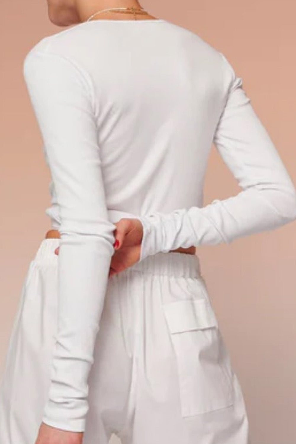 Type-Invigorate White Top, Color-White, Neck type-V neck, Sleeve Length-Full sleeve, Fit-Body Fit, Fabric-Poly Lycra