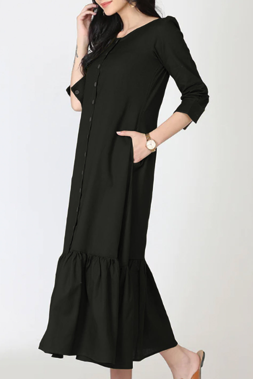 Type-Islington Black Dress Color-Black Neck type-Round Neck Sleeve Length-Three Fourth Fit-Regular Fabric-Rayon