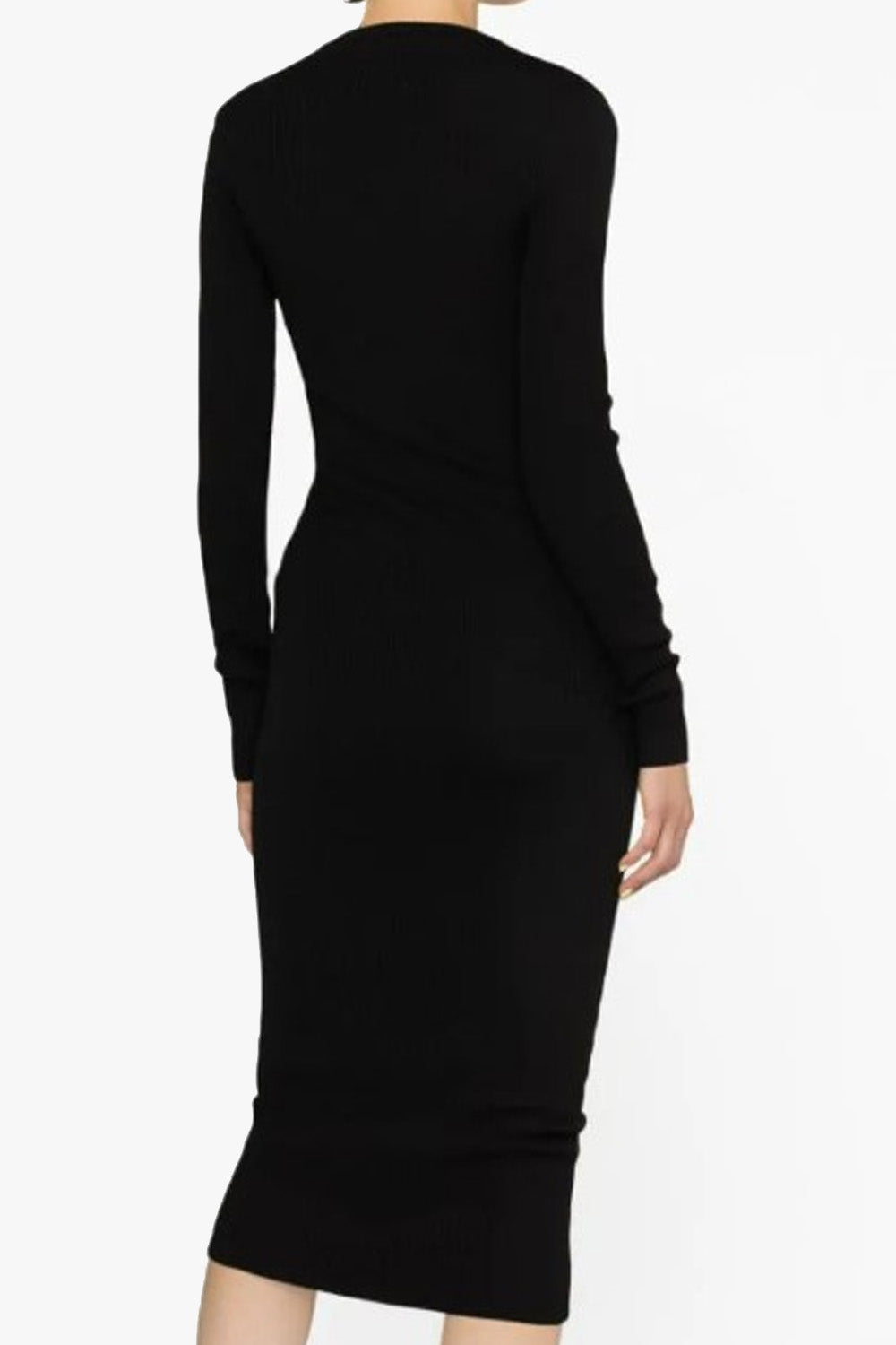 Type-Jasmine Black Dress, Color-Black, Neck type-crew neck, Sleeve Length-Full Sleeve, Fit-Body Fit, Fabric-Poly Lycra