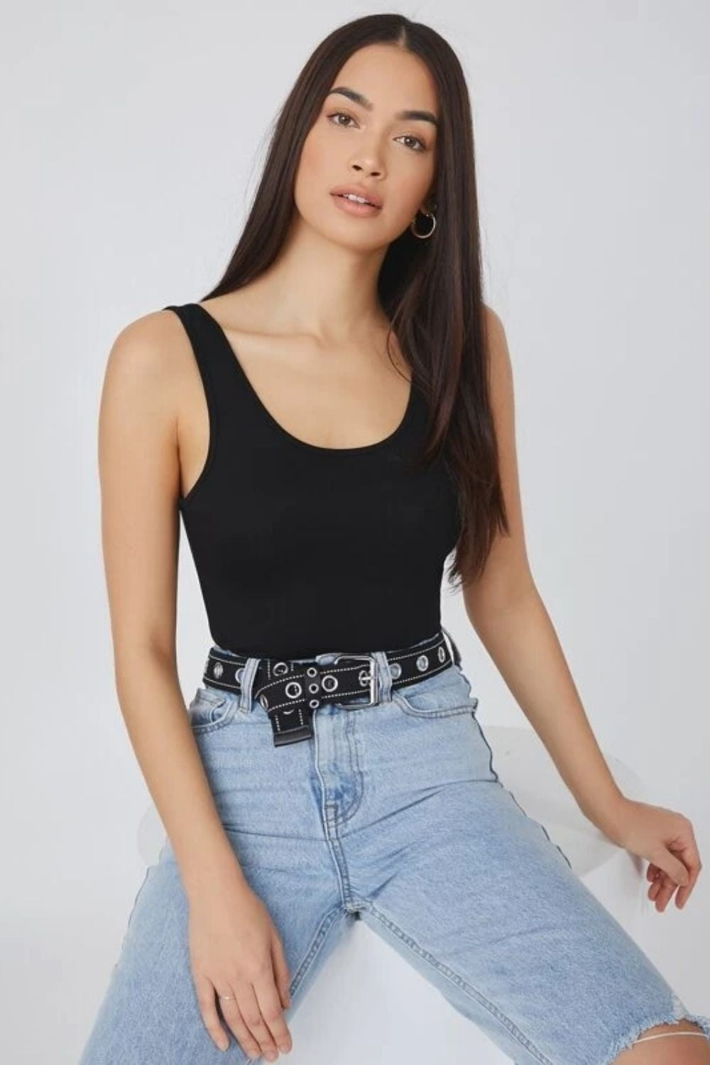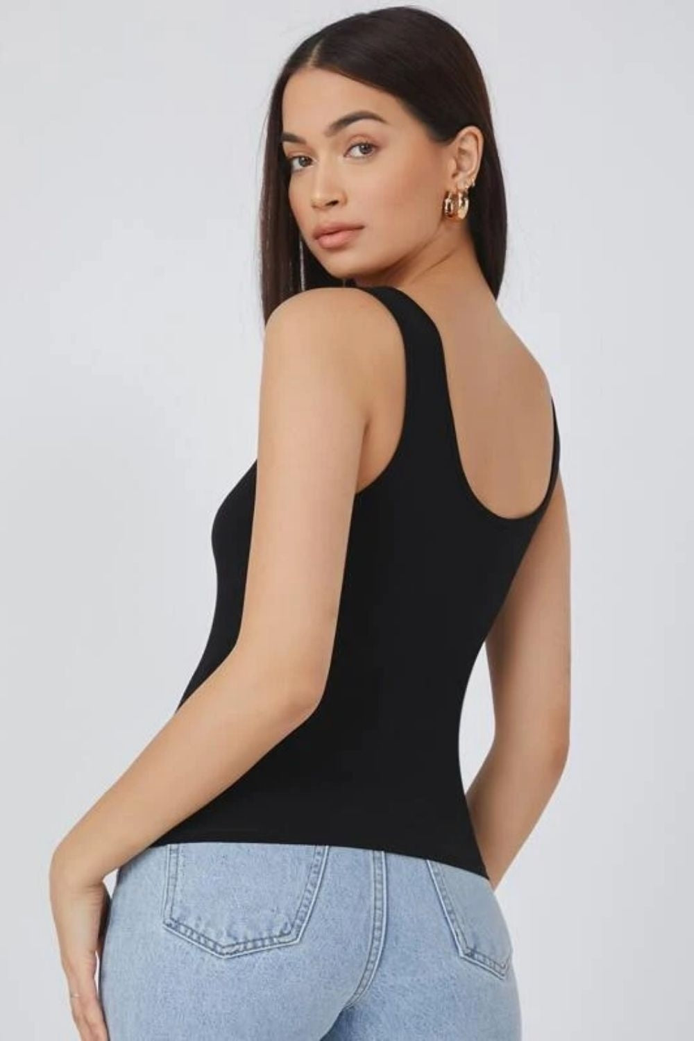 The timeless black color adds a touch of sophistication, making it easy to pair with a variety of bottoms, from your favorite jeans to flowy skirts. The scoop neck adds a feminine touch, highlighting your collarbone and creating a flattering neckline. This tank top is a versatile staple that can effortlessly take you from casual brunches to evening gatherings with friends.