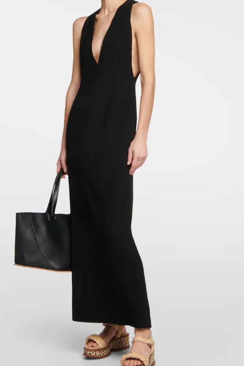 Type-Jinhae Black Dress, Color-Black, Neck type-Deep V neck, Sleeve Length-Sleeveless, Fit-Body Fit, Fabric-Poly Lycra