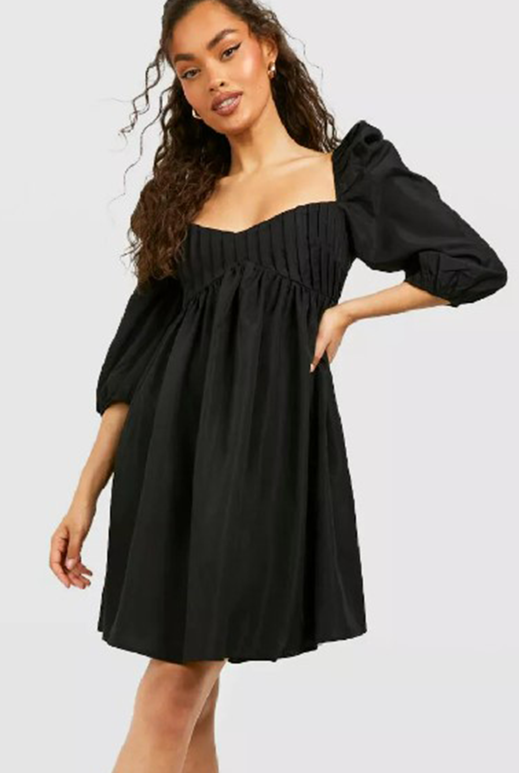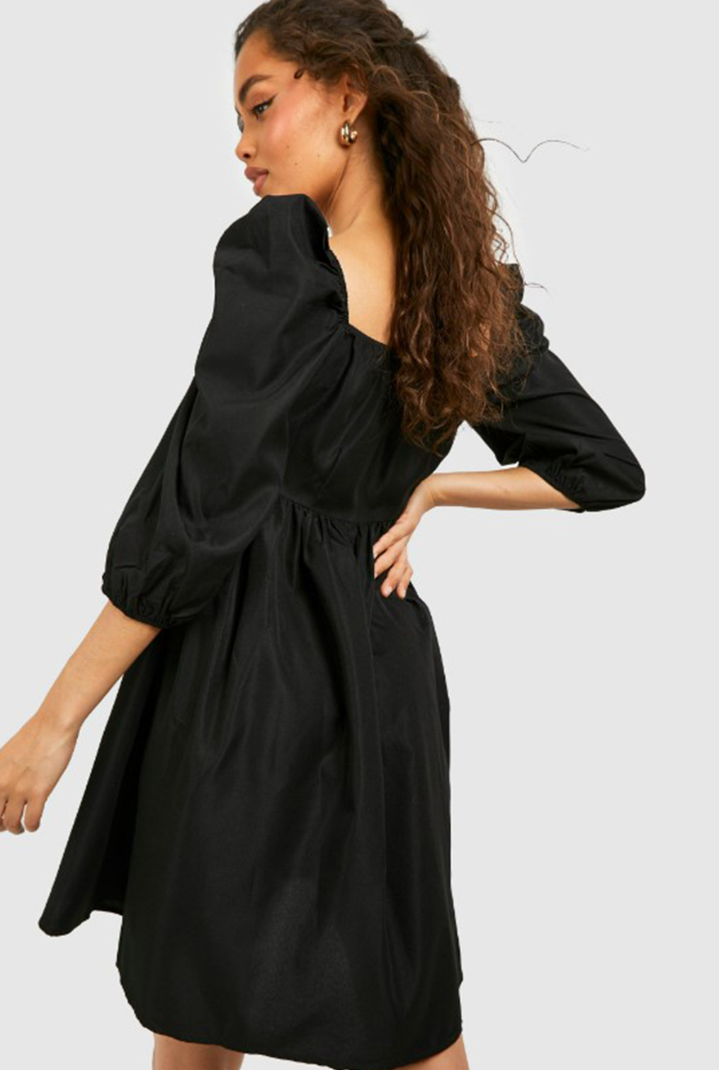 Type-Jocund Black Dress, Color-Black, Neck type-Sweetheart neck, Sleeve Length-Below elbow length, Fit-Regular, Fabric-Poplin