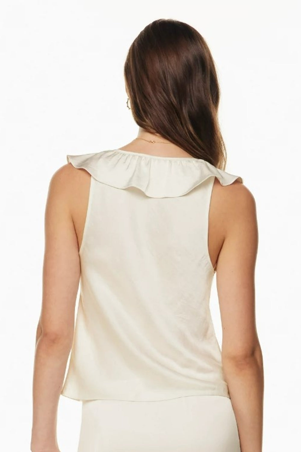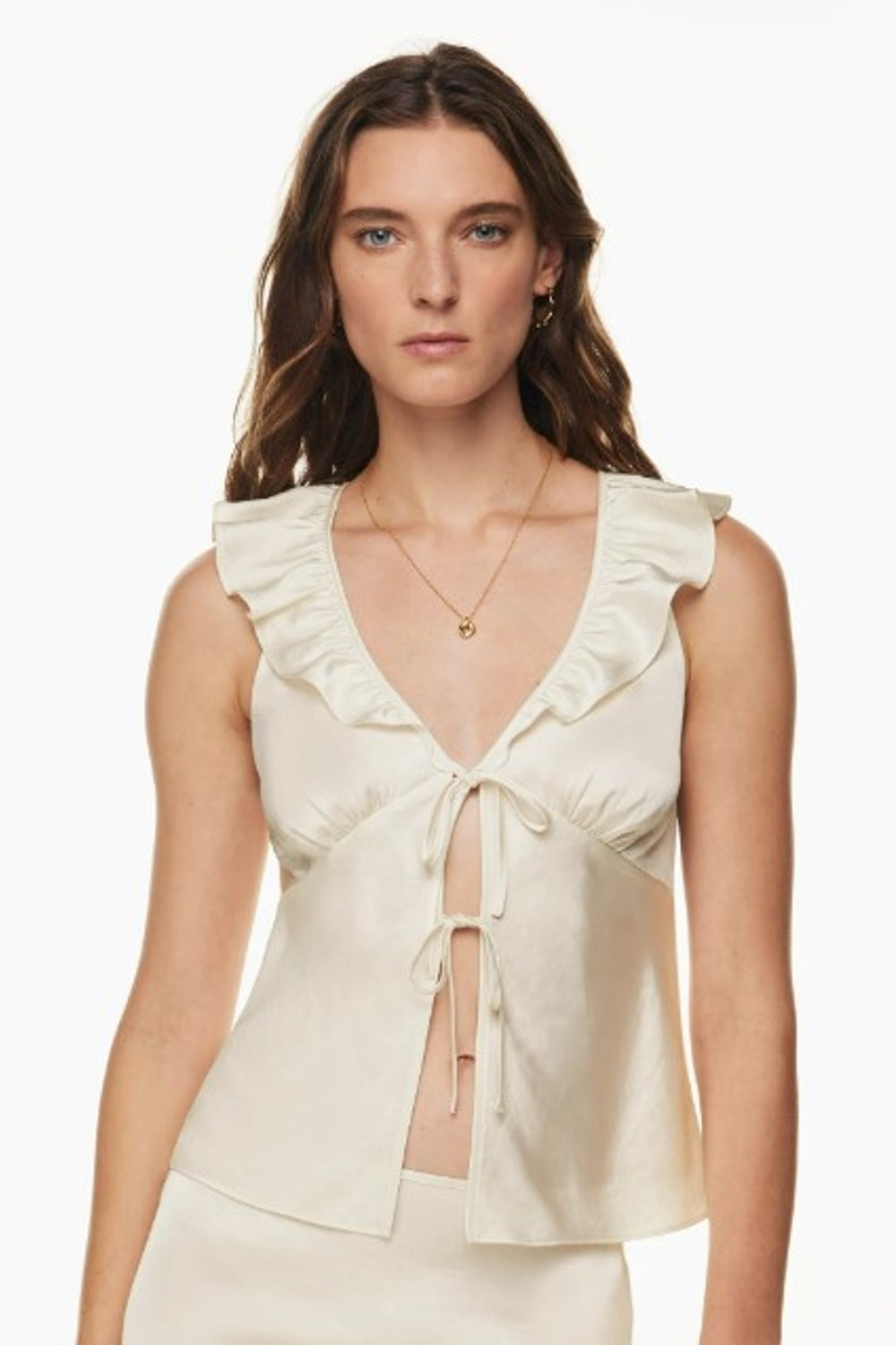 Type - Jonquiere Creame Top, Color - Creame, Neck type - Deep V neck, Sleeve Length - Sleeveless, Fit - Body Fit, Fabric - Satin