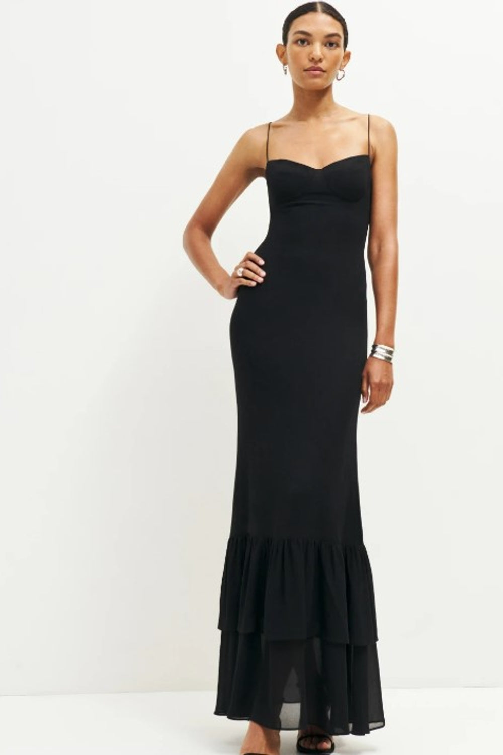 Effortless Elegance: Opt for minimalistic styling with dainty silver jewelry and nude heels for a look that exudes understated elegance. Let the dress speak for itself by keeping accessories simple and letting your confidence shine through.