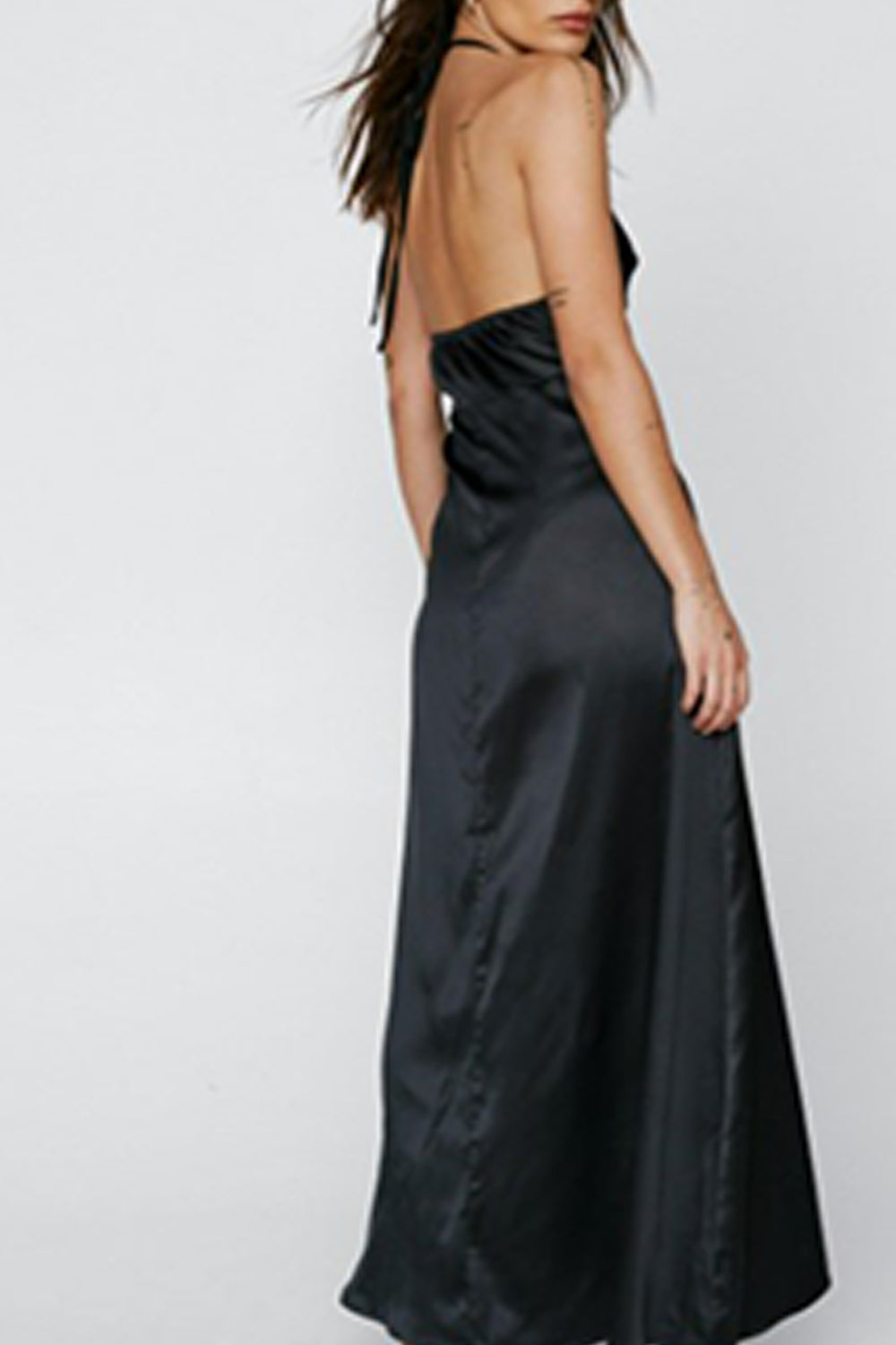 Type-Karditsa Black Dress Color-Black Neck type-Straight neckline Sleeve Length-Sleeveless Fit-Slim Fabric-Satin