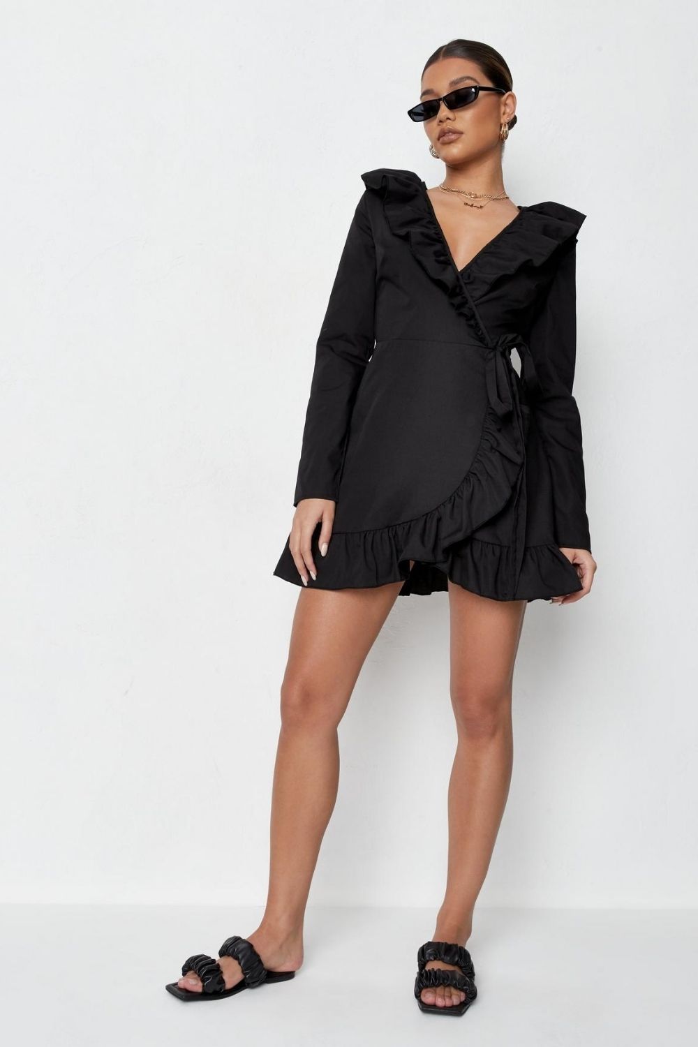 SKU:KimonoFrillHemlineBlackMiniDress-XS