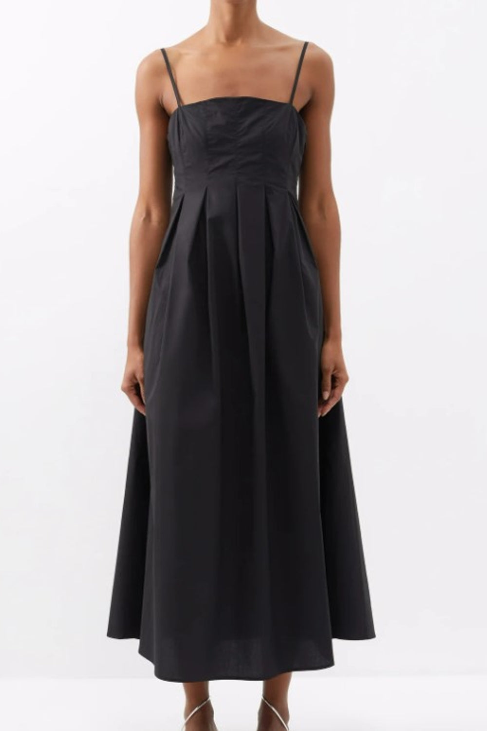 Type-Kitchener Black Dress, Color-Black, Neck type-Square neck, Sleeve Length-Sleeveless, Fit-Regular, Fabric-Poplin