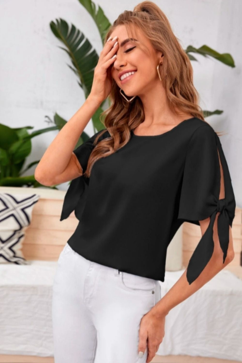 Knot Cuff Solid Blouse