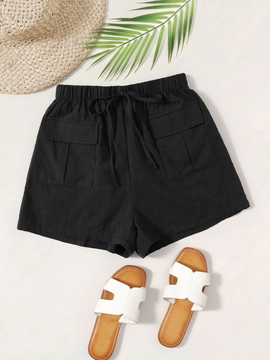 SKU:LNSKnotWaistPatchedShortsBlack-XS