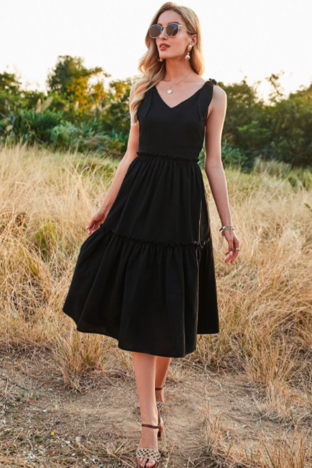 - Type: Knotted Shoulder Tiered Midi