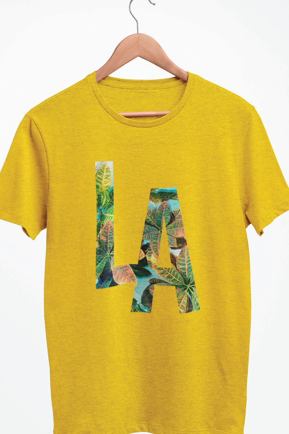 LA Nature inspired Yellow Printed Cotton Casual Tee