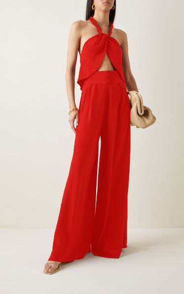 Type - Laudable Red Wide Leg Pants With Halter Neck Top