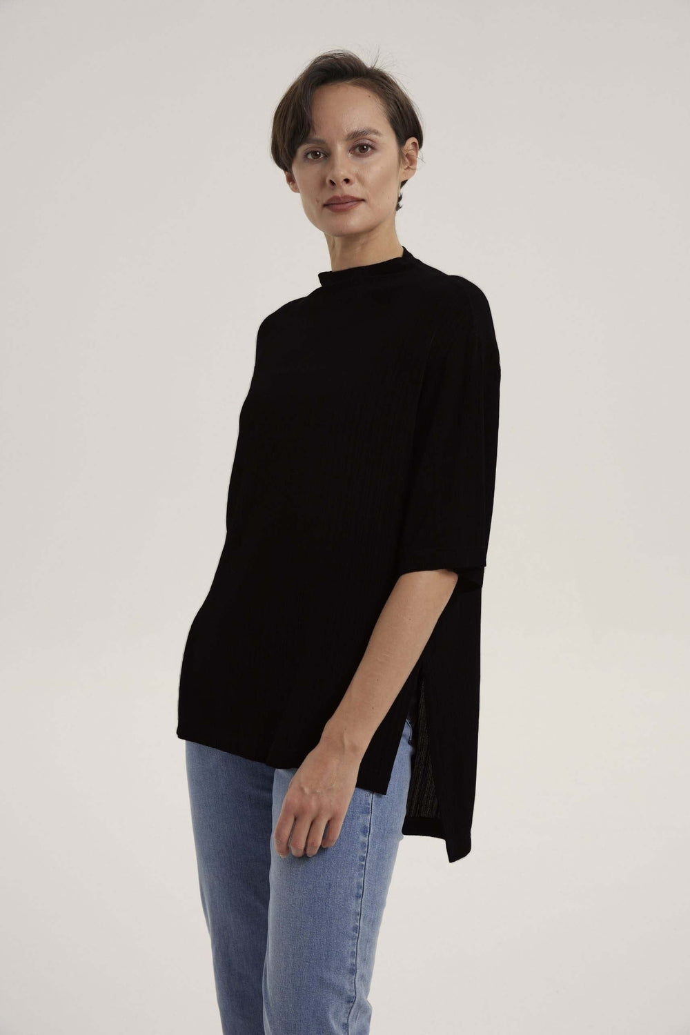 Monochrome Magic: Create a sleek monochrome ensemble by pairing the black Lowry top with black skinny jeans or a midi skirt. Add a pop of color with bold accessories or keep it chic and understated with all-black accessories.