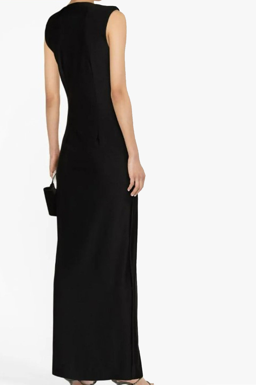 Type-Luminary Black Dress, Color-Black, Neck type-V neck, Sleeve Length-Sleeveless, Fit-Body Fit, Fabric-Poly Lycra